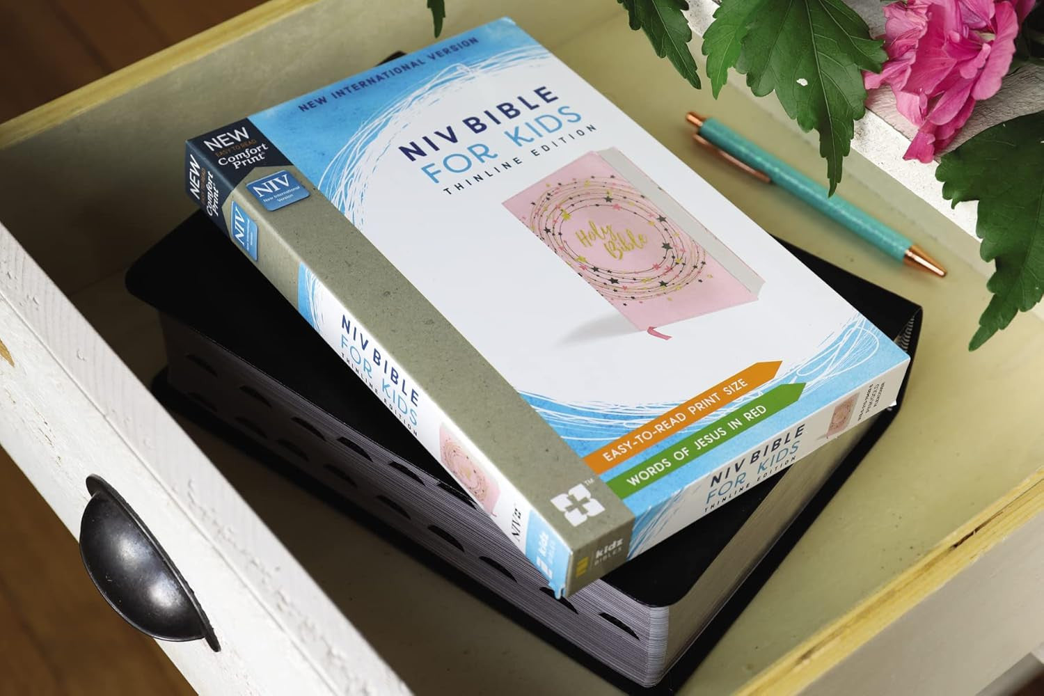 NIV, Bible for Kids, Flexcover, Pink/Gold, Red Letter, Comfort Print: Thinline Edition