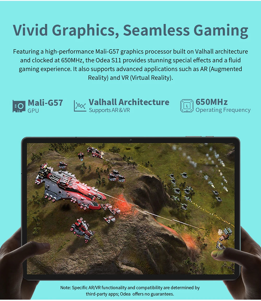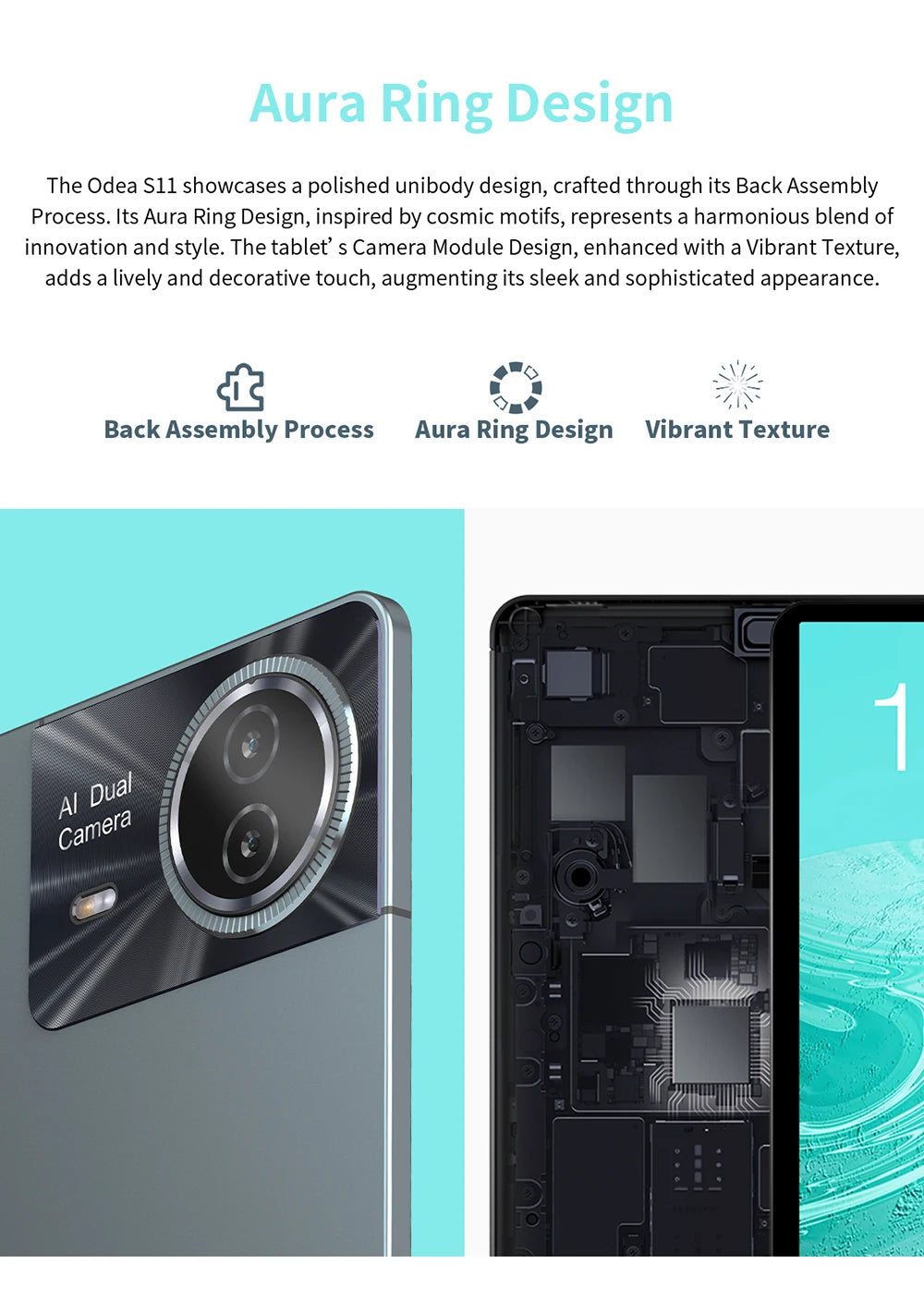 Odea S11 Tablet, 11 Inch Tddi, Android 14, (6+10)16Gb Ram, 256Gb Rom, 4g Lte, 8000Mah, 1920X1200, Unisoc T606, 8 Cores, Mali-G57, 5g Wifi, Gps, Sim Slots*2, Tf up to 1Tb, for Netflix Widevine L1