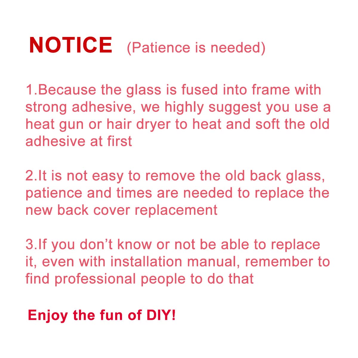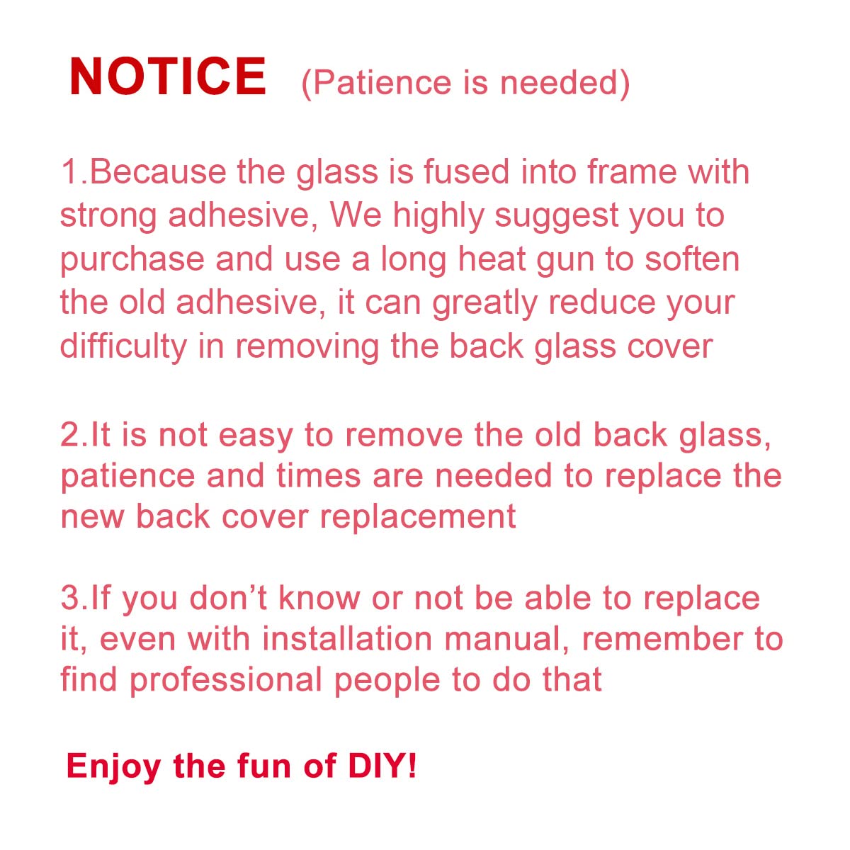- 【Risk-Free Shopping and Quality Warranty】 one year warranty for this back glass cover replacement. We can send a new rear back glass if you are not 100% satisfied with our products .Please feel free to contact us if you have any questions.