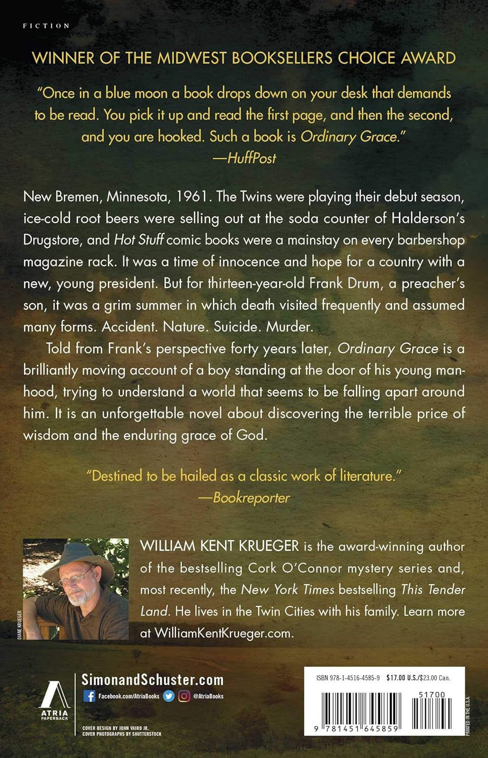 Told from Frank’s perspective forty years after that fateful summer, Ordinary Grace is a brilliantly moving account of a boy standing at the door of his young manhood, trying to understand a world that seems to be falling apart around him. It is an unforgettable novel about discovering the terrible price of wisdom and the enduring grace of God.