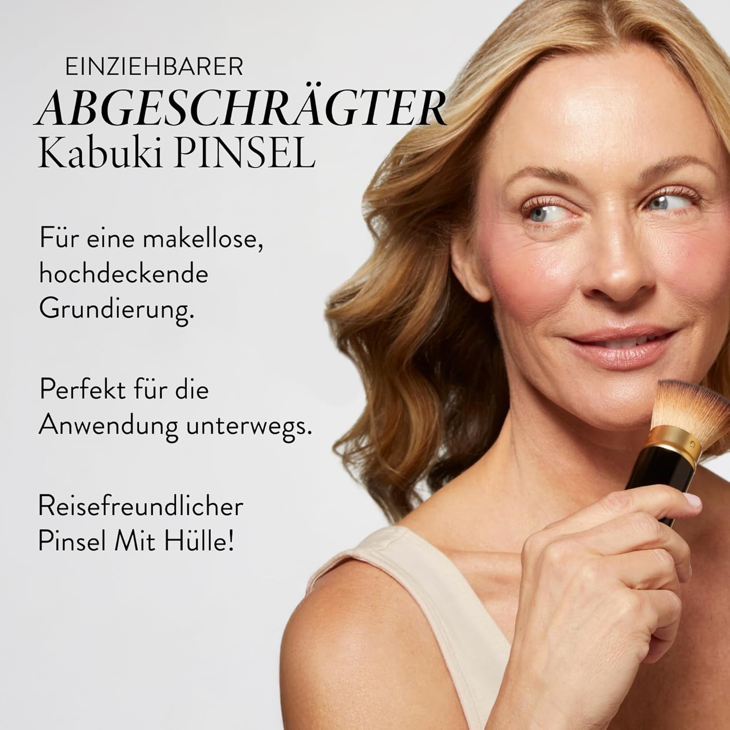 Retractable Black Kabuki Brush for Liquid, Cream and Powder Face Makeup with Alu
