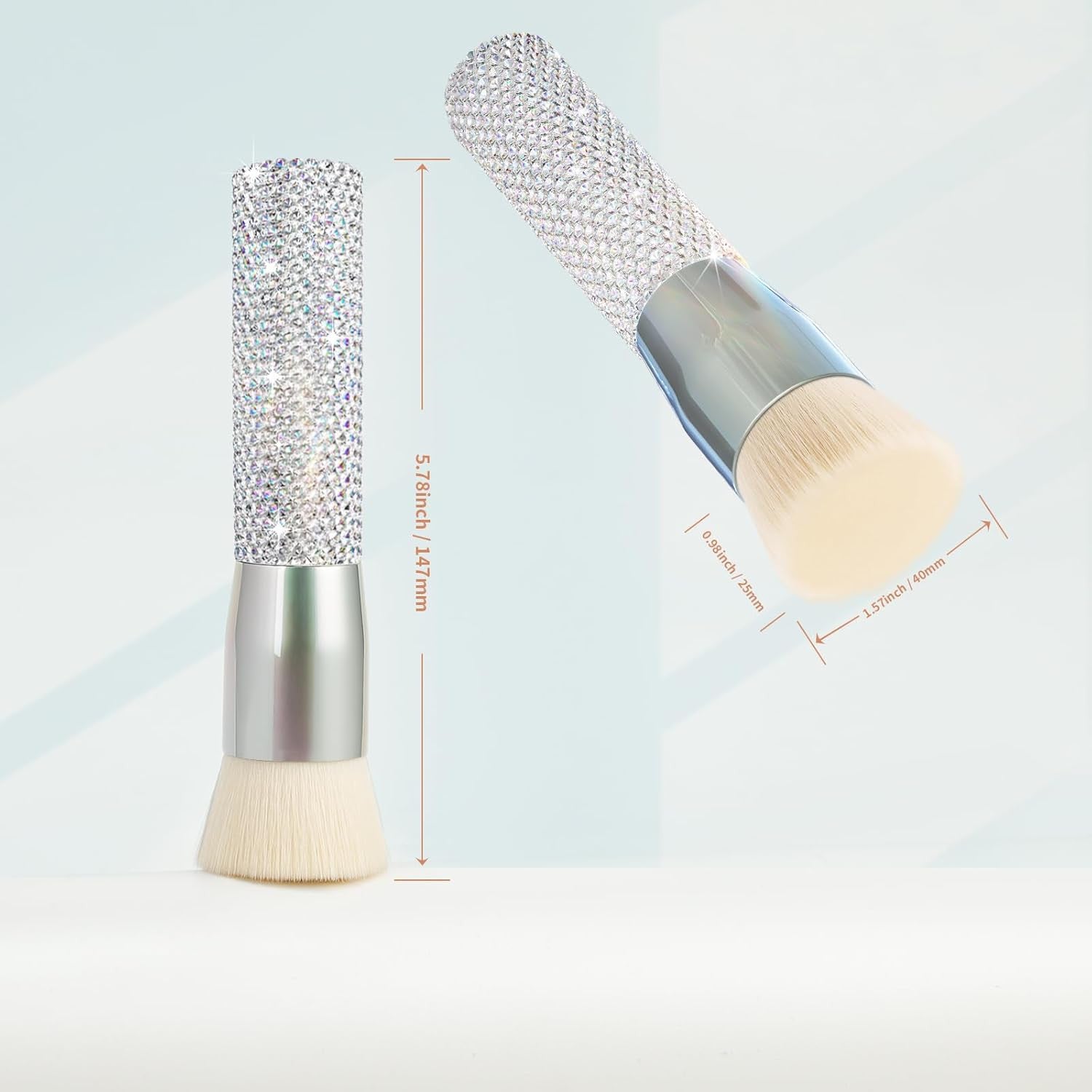 Color Silver Rhinestone Item Form Flat Top Synthetic Material Wood Bristle Material Nylon Handle Material Wood Material Feature Synthetic Recommended Uses For Product For Blending, For Bronzer, For Contouring, For Face Mask, For Foundation, For Tanning Ferrule Material Copper Package Dimensions 6.06 x 3.31 x 1.54 inches; 3.84 ounces Number of Pieces 1
