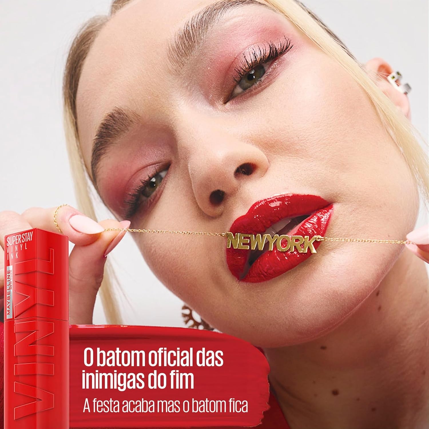 Shake up your longwear with Super Stay Vinyl Ink. This Liquid Lipcolor delivers no-budge saturated vinyl color and up to 16HR wear. Its color lock formula defies smudging and transfer. Swipe the formula across your lips and enjoy an instant shine and all day color. Available in 10 high-impact vinyl shades for your every lip look. From brights to saturated red tones and even the perfect everyday neutrals, express yourself with Maybelline longwear lipcolor