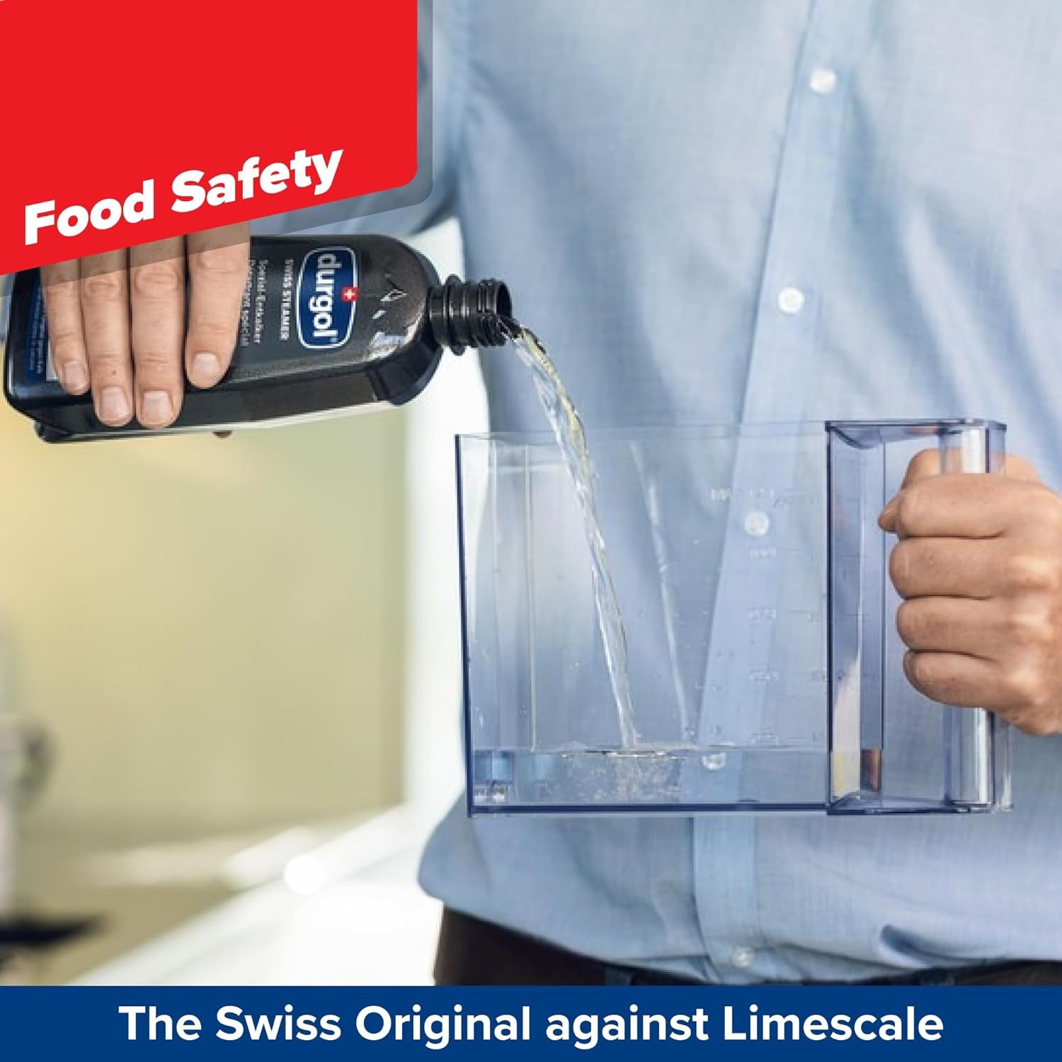 Designed to break up harmful calcium deposits and limescale buildup in steamer ovens, durgol Swiss Steamer is a professional grade descaler solution that will help you maintain and enhance the performance of your home kitchen's steamer oven. This descaler solution is made from phosphoric and hydrochloric acid to remove tough buildup and deposits. Unlike other citric-acid based solutions, this powerful cleaner will clean up even tough limescale buildup that could compromise the performance of your machine. Regular descaling of steam ovens will help machines perform at their highest level, so you can continue to host family, friends, and dinner party guests at your house! These descalers leave no residue, odor, or aftertaste and conveniently come ready for use with no preparation necessary. This powerful formula is designed specifically for steamer ovens and will work with nearly any brand. durgol Swiss Steamer descaling liquid is easy to use: simply fill the steam oven's water tank and start the decalcification program. If your steam oven doesn't have a decalcification program, simply distribute the descaler liquid throughout the water tank with a sponge. Let it stand, and then rinse and dry the water tank well.durgol descaling solutions are developed and manufactured in Switzerland, so you can be confident they meet strict safety and quality standards. Add these professional grade descaling products to your home kitchen supplies so you can be prepared for limescale buildup, calcium deposits, and more.