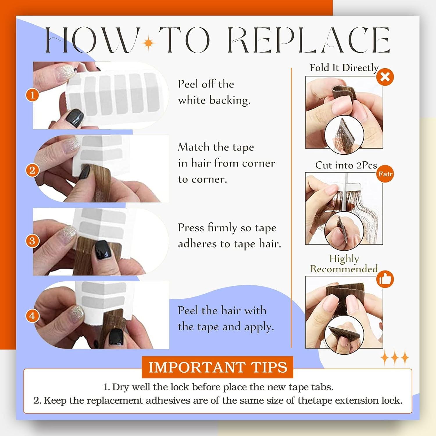 Elevate your style with our Tape in Hair Extensions Real Human Hair. Made from real remy human hair, these extensions blend seamlessly into your natural hair. From adding length and volume to creating highlights.Our strong tape ensures a secure fit.Choose the pack for your hair type and thickness. They are ideal for everyday use as they seamlessly blend with your natural hair, providing a natural look and feel. If you are attending a special event like a wedding or prom, tape in extensions can help you achieve that glamorous hairstyle you've always dreamed of. Color Discrepancy Color variance or mismatch, often referred to as 'color discrepancy', can be a common issue in tape in hair extensions. This could be due to several factors, such as lighting conditions during production, differences in screen displays when purchasing online, or simply the natural variations that occur in human hair.To combat this issue, some prefer to order a swatch or a small sample of the hair extension before making a full purchase. And We Can Help You to Choose The Right Color. Don't Worry. The application process is fairly straightforward. Your hairstylist will section off your hair, press the adhesive side of the extension onto the underside of a section, then place another extension on top. The process sandwiches your natural hair between two extensions, which helps them blend seamlessly.One of the key benefits of tape hair is their lightweight and flexible nature. They lay flat against the scalp, providing a comfortable fit, and blend well with your natural hair. Don't use conditioner or olive oil before installation.Sandwich is the best way but don't sandwich too much hair.Don't wash your hair in 48 hours.Tape extension must be applied to washed clean hair. Part your hair in desired area.Rip off the cover on the tape extension. Line up extension directly and attach by pressing to piece of desired hair.Double the thickness by adding another layer to the underneath of the piece.Two sticky sides face each other and the section of hair will be in the middle Our hair can be styled like your own hair.When use hot iron, please keep the temperature less than 200 degrees Celsius. Hair can be dyed to the darker color.We recommend having your hair dresser dye the extensions, because coloring them by yourself always poses a high risk of not coming out the shade you want. when you want to dye the hair extensions, please wash the hair to ensure the hair is clean, because our hair will be deeply treated, if you dye it directly, it may not be easy to color 1.The tape need to be replaced regularly,we suggest that you replace the tape every 4-6 weeks.Peel off the white backing 2.Match the tape in hair from corner to corner 3.Press firmly so tape adheres to tape hair 4.Peel the hair with the tape and apply.Dry well the lock before place the new tape tabs,keep the replacement adhesives are of the same size of the tape extensions lock.After wearing tape in hair,heating the tapes 5-6s one time, repeating 5-6 times. Your hair is now thick and seamless. Proper care can extend the life of your hair. It is important to remember that proper care and maintenance are necessary to prolong their lifespan Make sure that the hair is straight when you measure it.Don't include the tape in your measurement. Whether you're looking to add length, volume or color, tape hair can be a good solution. Tape in hair extensions are also ideal for trips as they require minimal maintenance. How do you keep the hair from getting tangled? We do not suggest sleep with your hair extensions wet. Instead of sleeping on a cotton pillowcase, we recommend using silk,which will reduce the amount of friction that is caused during your sleep. Can you dye the hair? Of course, Professionally installed hair extensions offer that kind of versatility, which enables both men and women to have the style, cut, or color of their dreams. How many packs do you need? If Your Hair is Fine, Need 1-2 Packs,If Your Hair is Thin, Need 3-4 Packs.Usually 3-4 Packs Can Get A Good Thickness. How many times can you reuse them? The tape in hair extensions human hair which can last 6–14 weeks according to different using way, you may also could use over 3 months. How to avoid tapes of tape hair extensions not sticking? Avoid applying oily hair care products near the tapes. Do not wash your hair for at least 48 hours after applying the extensions. When styling, avoid using high temperatures near the adhesive tapes.Be gentle when brushing or styling your hair.