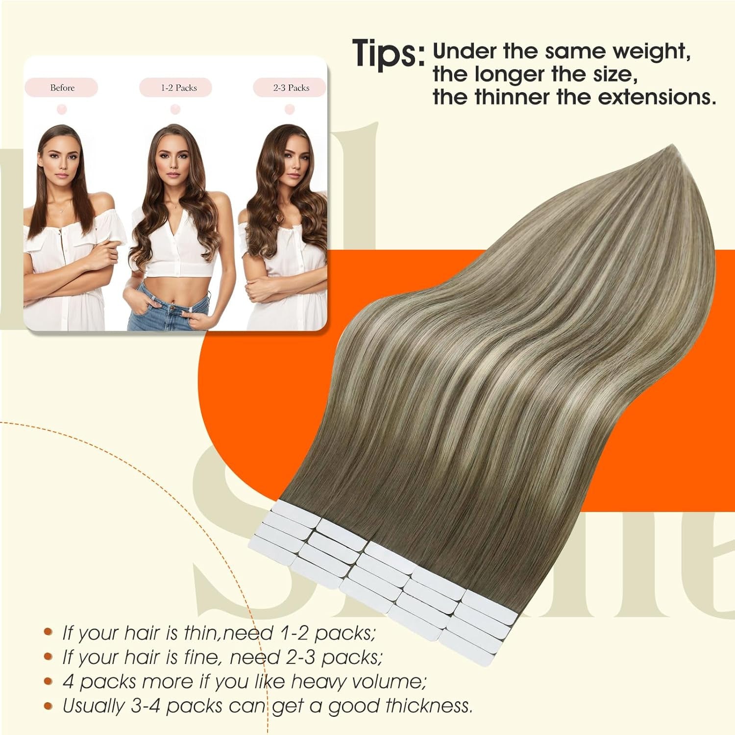 Full Shine Balayage Blonde Tape in Hair Extensions Human Hair