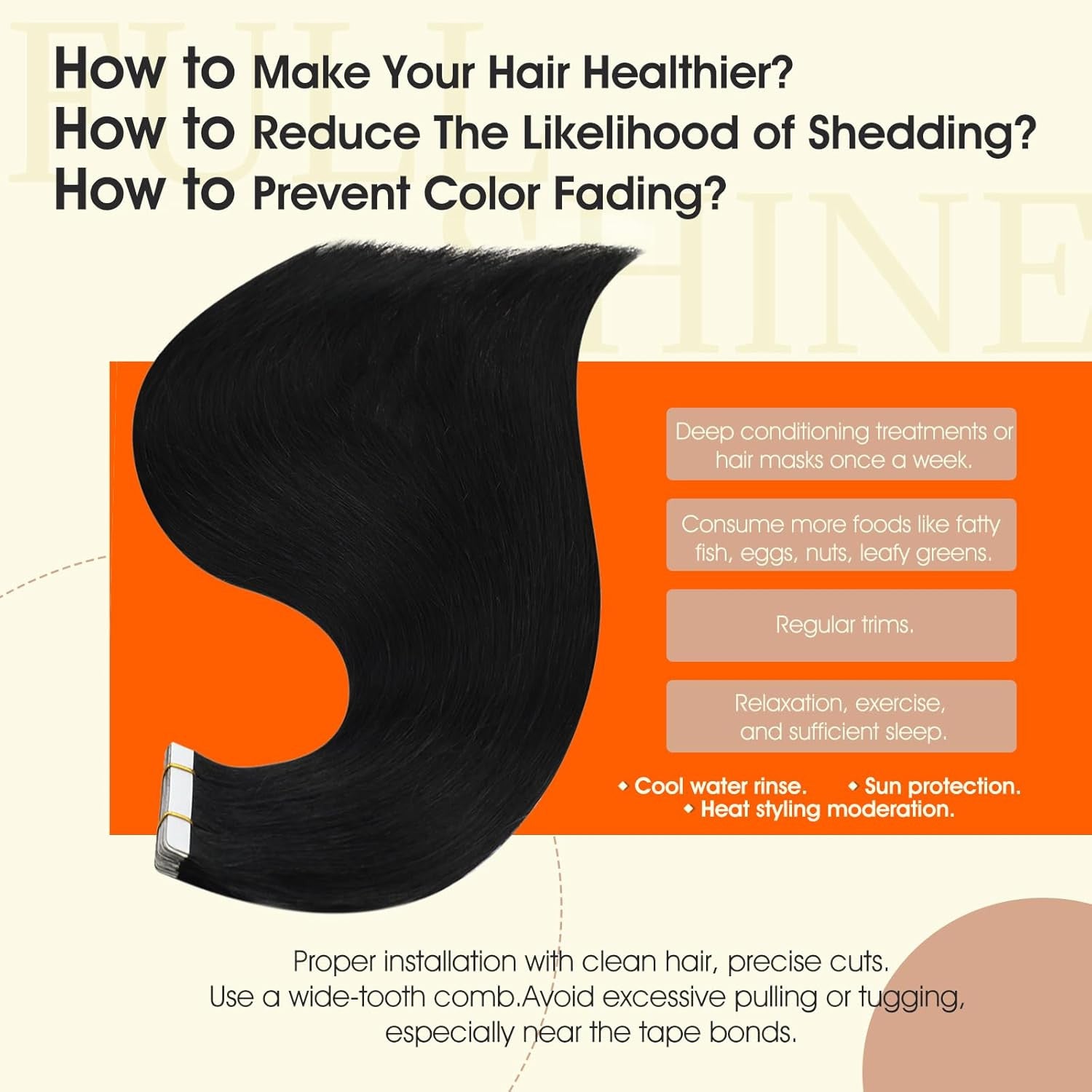 Full Shine Black Tape in Hair Extensions Human Hair,Real Remy Hair