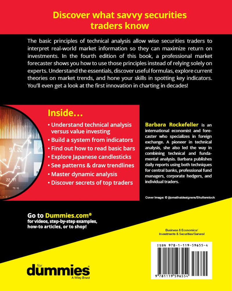 Grasp and apply the basic principles of technical analysis Savvy traders know that the best way to maximize return is to interpret real-world market information for themselves rather than relying solely on the predictions of professional analysts. This straightforward guide shows you how to put this into profitable action―from basic principles and useful formulas to current theories on market trends and behavioral economics―to make the most lucrative decisions for your portfolio. The latest edition of Technical Analysis for Dummies includes a brand-new chapter on making the right decisions in a bull or bear market, an updated look at unique formulas and key indicators, as well as refreshed and practical examples that reflect today today's financial atmosphere. With comprehensive coverage from charting basics to the cutting edge, Technical Analysis for Dummies includes everything you need to the make informed independent market decisions that will maximize your profits. Happy trading!