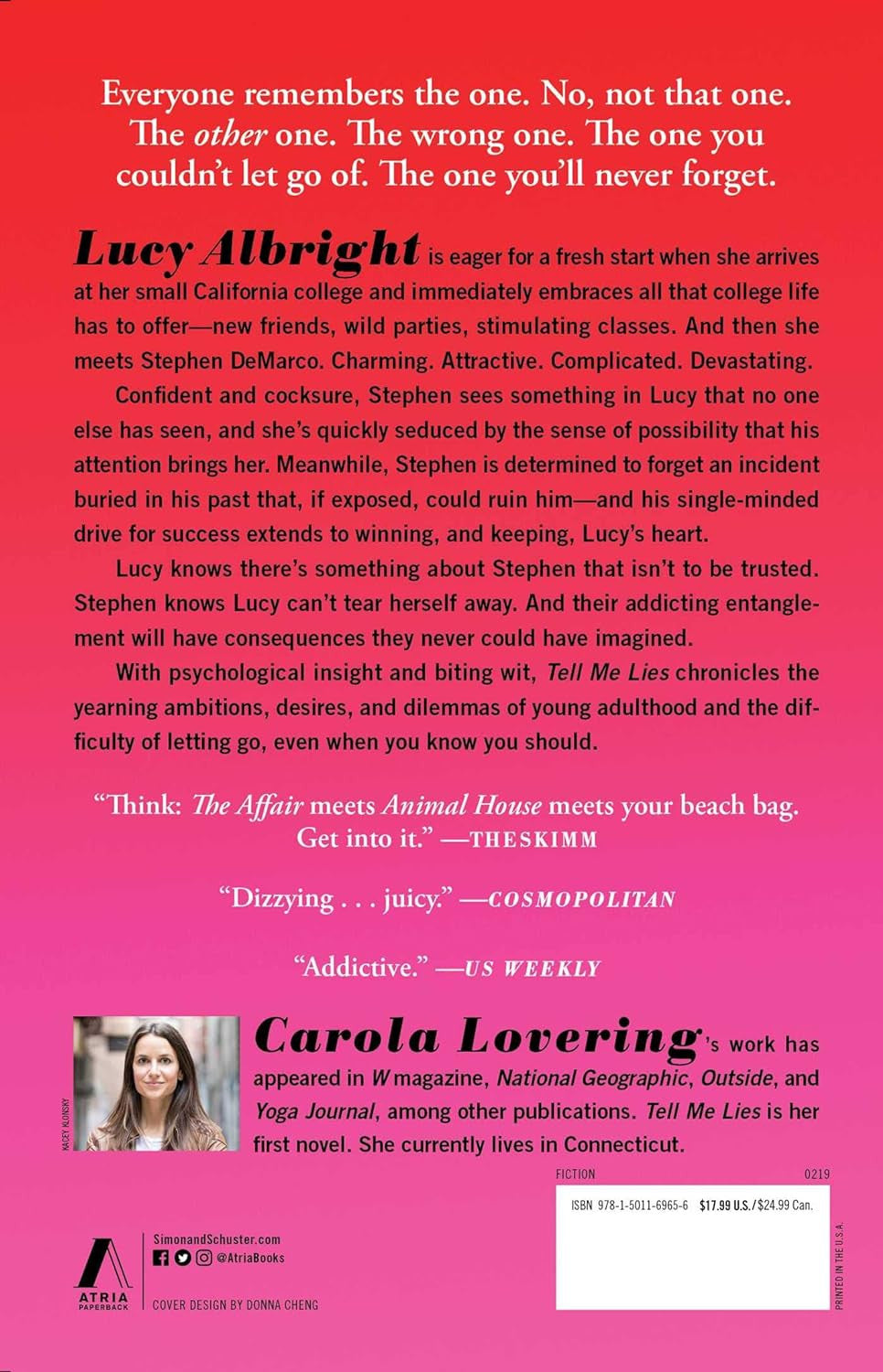 Alternating between Lucy’s and Stephen’s voices, Tell Me Lies follows their connection through college and post-college life in New York City. “Readers will be enraptured” (Booklist) by the “unforgettable beauties in this very sexy story” (Kirkus Review). With the psychological insight and biting wit of Luckiest Girl Alive, and the yearning ambitions and desires of Sweetbitter, this keenly intelligent and supremely resonant novel chronicles the exhilaration and dilemmas of young adulthood and the difficulty of letting go—even when you know you should.