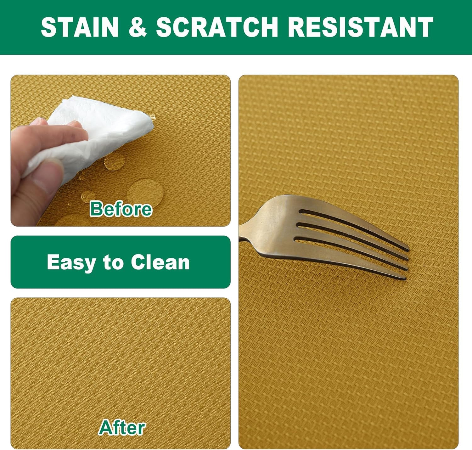 Textured Fabric round Christmas Table Cloths 108", Gold Water Resistant Table Co
