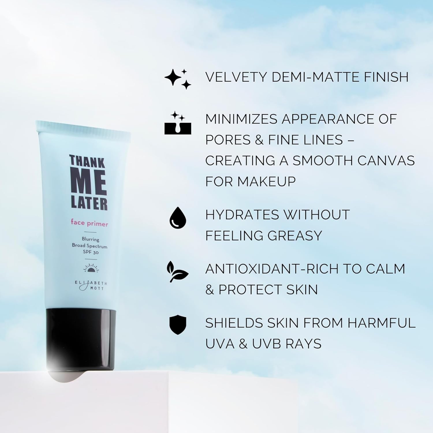 Thank Me Later Blurring Face Primer SPF 30 – Lightweight, Hydrating Makeup Primer - Smooths Fine Lines & Wrinkles for a Soft-Focus Finish – Mineral-Based, Cruelty-Free Formula – 30G
