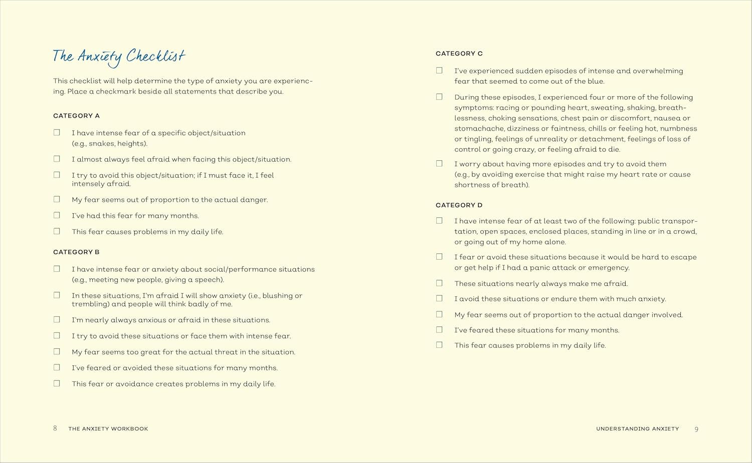 Take control of your anxiety―one week at a time. If you feel overwhelmed, stuck in constant worry, or exhausted by panic, you're not alone―and you're not powerless. The Anxiety Workbook offers a compassionate, structured, 7-week plan to help you break the cycle of anxiety and reclaim your life with confidence. Developed for real-world use, this workbook blends expert-backed strategies with straightforward exercises designed to reduce anxiety symptoms, reframe unhelpful thought patterns, and build mental resilience. Whether you're battling daily stress or facing panic attacks, each weekly chapter builds on the last, guiding you toward lasting emotional calm. Practical relief in just minutes a day―These easy-to-follow exercises help reduce anxiety symptoms quickly and sustainably through clear weekly lessons and self-reflection tools. An evidence-based method―Discover research-supported advice and exercises based in cognitive behavioral therapy (CBT). Lasting change―Develop skills you'll carry long after the 7 weeks are over, with writing prompts, exercises, and action plans that empower transformation. The Anxiety Workbook gives you the tools you need to manage your anxiety so you can feel and function better.