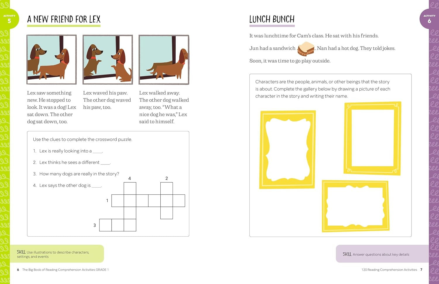Improve reading and comprehension skills through play with first grade learning activities for kids ages 5 to 7. Perfect for summer bridge reading! Help first graders learn to read and improve comprehension with colorful activities they'll have a blast doing. From short stories to fill-in-the-blanks, The Big Book of Reading Comprehension Activities, Grade 1 is an ideal back-to-school book for kids, jam-packed with 120 awesome reading lessons that are perfect for after-school and summer practice. Kids will learn the different parts of a story, how to ask questions about what they read, and more! Learning through play―A wide variety of different exercises help kids engage with the material and get excited to learn to read. Essential skill development―Set little ones up for a lifetime of success as they learn to retell stories, describe main ideas, identify characters, and more. Progressive difficulty―The activities in this first-grade reading comprehension workbook start simple and grow more complex as kids learn to read more fluently. Give early readers a boost in school with super fun reading activities that grow their thinking skills in this 1st grade summer workbook.