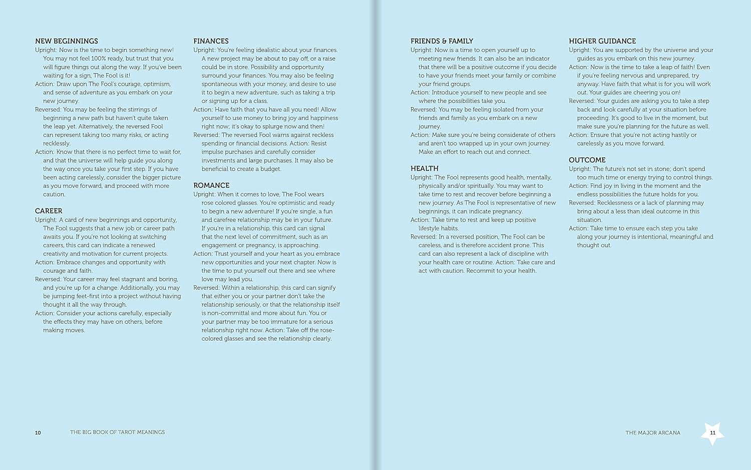 In addition to providing fine-tuned interpretations, The Big Book of Tarot Meaningssolves a second common question that comes with a tarot reading—How do I apply this knowledge to my everyday life?—by giving you an action item for each meaning, upright and reversed.