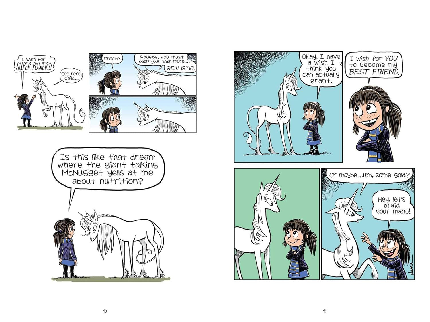 After 9-year-old Phoebe skips a rock across a pond and hits the majestic face of Marigold Heavenly Nostrils, she is granted one wish: for the vainglorious unicorn to be her obligational best friend. Hilarious hijinks ensue as Phoebe and Marigold take on everything from school frenemies to goblin queens, and everything in between. As Phoebe basks in Marigold's radiant self-confidence, and Marigold comes to appreciate the freedom of human weirdness, the unlikely duo forges a real connection. Together, they learn that believing in your friends can be the most magical thing of all (after Marigold's beauty, of course).