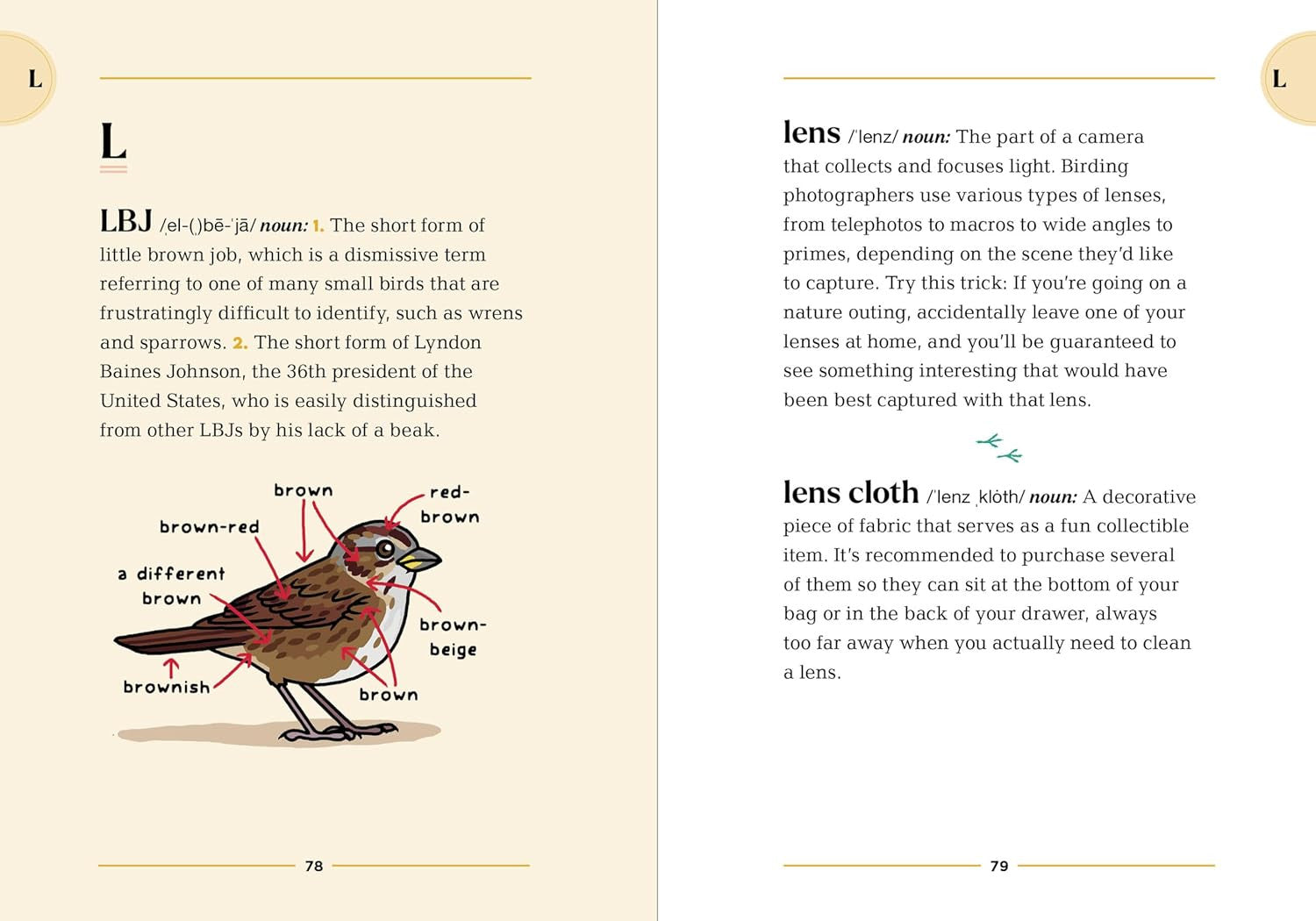 Acclaimed science communicator and cartoonist Rosemary Mosco offers a clever, humorous “dictionary” that’s perfect for any birder. The Birding Dictionary is filled with hilarious and informative definitions for more than 200 birding terms, plus over 50 witty full‑color illustrations. Terms range from bird species, anatomy, and behaviors to the insider jargon that all birders know and speak fluently, from “alpha code” to “zygodactyl.” With equal parts quirky humor and accessible science, it’s a delightful gift for every bird enthusiast.