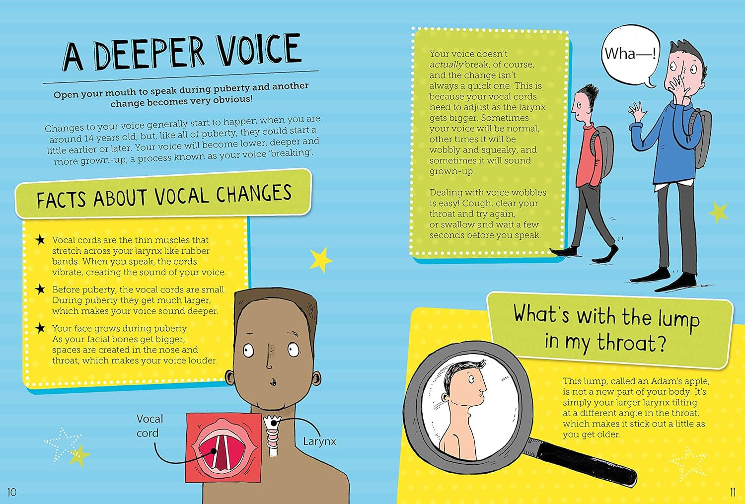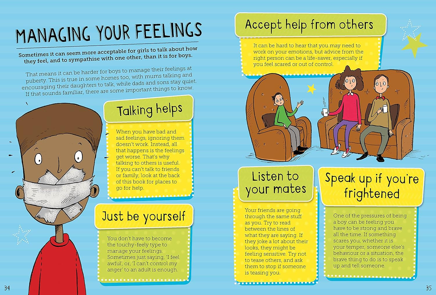 The Boys' Guide to Growing Up also includes advice on topics such exercise, healthy eating, shaving, talking about feelings and how puberty affects girls, and has an age-appropriate section on sex and reproduction.