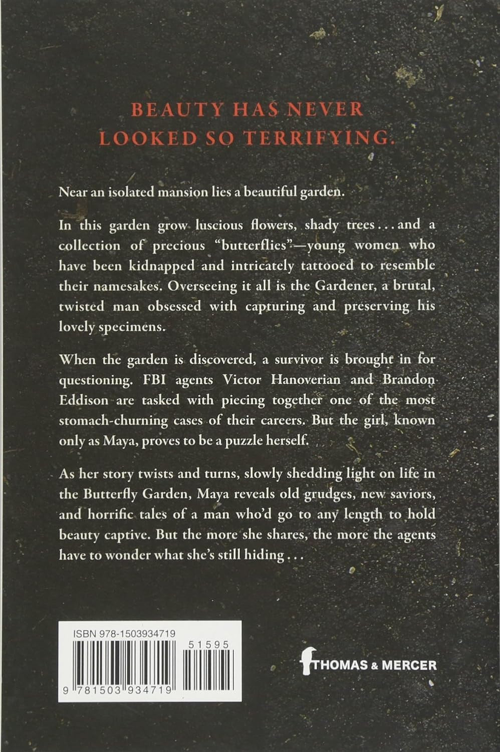 An Amazon Charts bestseller. Near an isolated mansion lies a beautiful garden. In this garden grow luscious flowers, shady trees…and a collection of precious “butterflies”―young women who have been kidnapped and intricately tattooed to resemble their namesakes. Overseeing it all is the Gardener, a brutal, twisted man obsessed with capturing and preserving his lovely specimens. When the garden is discovered, a survivor is brought in for questioning. FBI agents Victor Hanoverian and Brandon Eddison are tasked with piecing together one of the most stomach-churning cases of their careers. But the girl, known only as Maya, proves to be a puzzle herself. As her story twists and turns, slowly shedding light on life in the Butterfly Garden, Maya reveals old grudges, new saviors, and horrific tales of a man who’d go to any length to hold beauty captive. But the more she shares, the more the agents have to wonder what she’s still hiding…