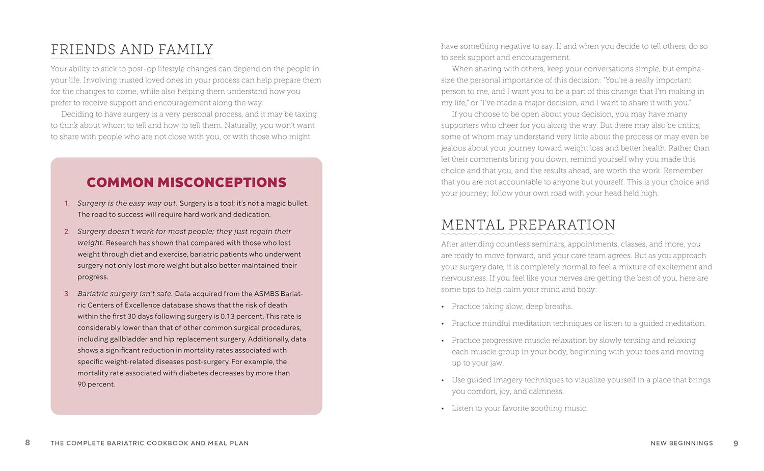 A comprehensive cookbook and meal plan for pre- and post-recovery from bariatric surgery Bariatric surgery isn't just about building a new relationship with food; it's also about creating a new philosophy toward life. This bariatric cookbook shows you how to use the delicious power of meal prep and planning to make sustainable changes to your diet and your lifestyle. From grocery lists to meal and exercise plans, this gastric sleeve cookbook is filled with balanced meals from Peanut Butter and Chocolate Shakes to West Coast Crab Cakes. Meticulous dietary advice will guide you on your successful journey from pre- to post-bariatric surgery. This cookbook and meal plan is your all-in-one resource to prepare for and recover from bariatric surgery.