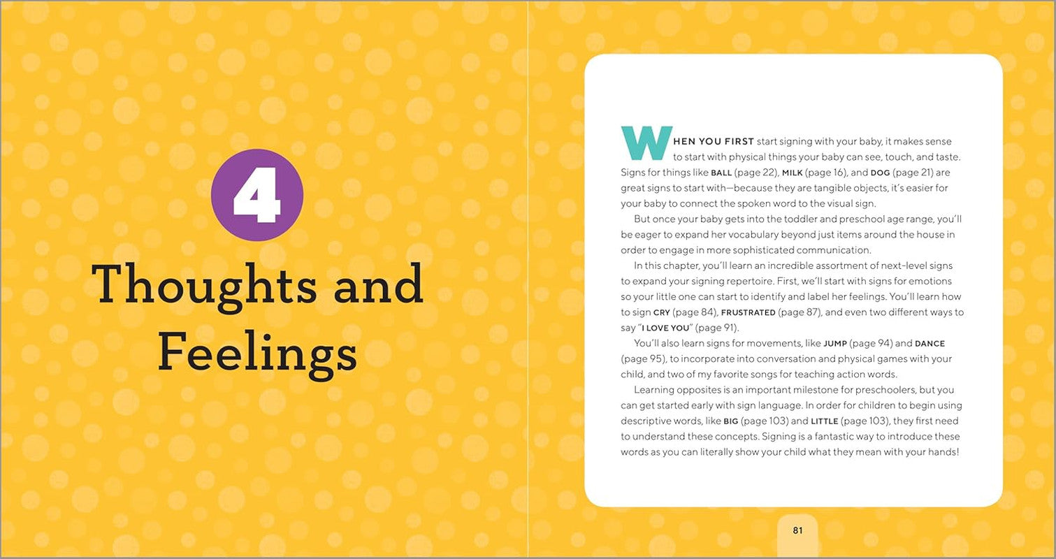 Communicate with your baby with more than 200 ASL signs! Did you know that babies and toddlers can understand sign language well before they can speak? This creates an exciting way for them to learn and communicate at an early age. The Complete Guide to Baby Sign Language walks you through a huge variety of American Sign Language (ASL) signs that you and your little one can learn together. Start things off with the essentials―like "eat," "potty," and "all done"― then move on to everyday signs for specific toys, foods, people, and even emotions. Illustrated and easy to use―Each sign in this baby book includes an image and written steps to show you how to sign it correctly, along with tips for how to remember it and use it consistently with your child. 200+ signs―Go beyond other baby books on sign language with signs that cover everything from mealtime and bedtime to travel, play, and school. Signing at every stage―Discover how signing can be an indispensable tool for communicating with babies, toddlers, preschoolers, and children with special needs―even before they're able to sign back. Find new ways to connect with your child with this comprehensive guide to baby sign language.
