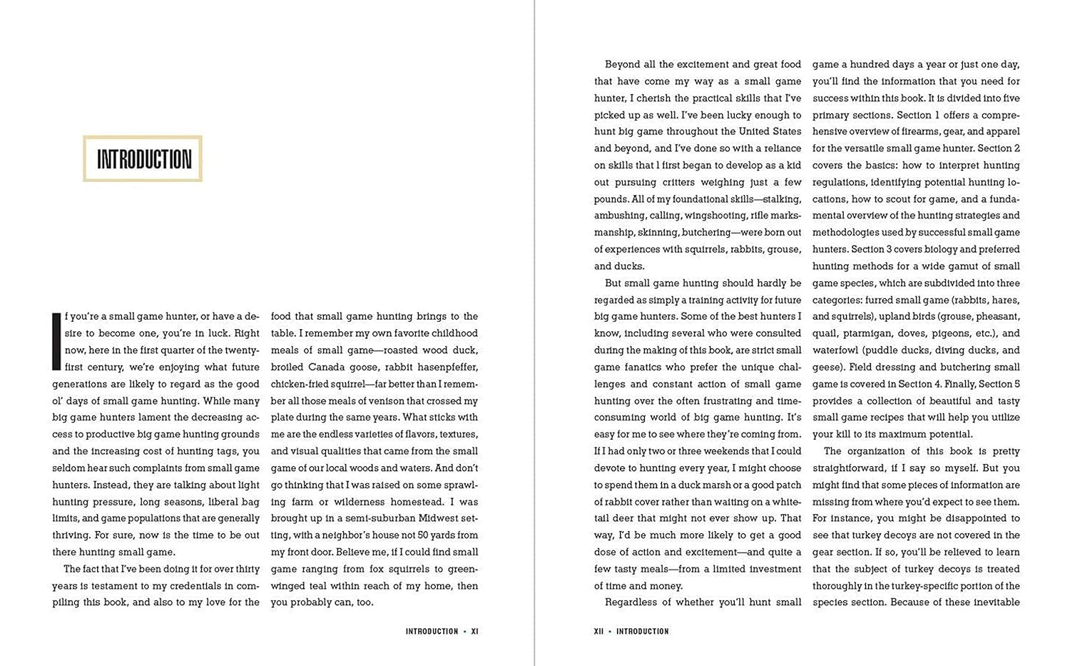 • detailed sections on furred small game, upland birds, and waterfowl, covering the biology and best hunting methods for a total of thirty small game species