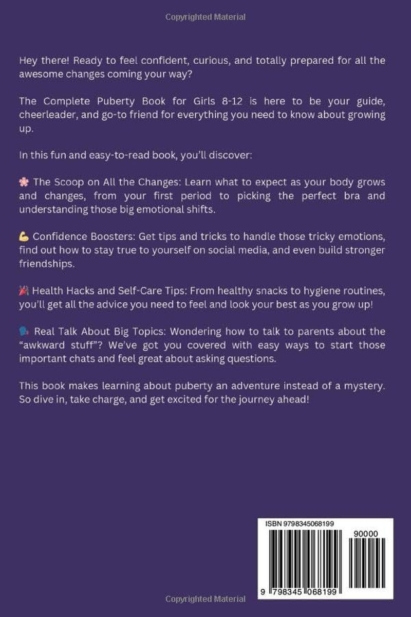 Is your daughter curious, excited, or even a little nervous about puberty? Or maybe you're looking for the perfect resource to help her deal with all the changes that come with this time? She may be starting to notice her body changing, or perhaps she has already begun her period. Growing up can feel overwhelming, so it’s crucial for her to understand what's happening as she enters this new chapter. If your daughter is between 8 and 12 years old, this is the guide she needs to help her make sense of her changing body, mind, and emotions.In The Complete Puberty Book for Girls 8-12: Your daughter will discover what she needs to know to confidently face the changes of puberty. What This Book Will Do for Your Daughter: And so much more! This comprehensive guide covers everything she needs to know, whether it’s her first period or her first time managing emotions in new ways. With friendly, easy-to-understand language and vibrant illustrations, this book feels like chatting with a trusted friend. If you're ready to help your daughter handle puberty with confidence and excitement, gift her Puberty Book for Girls today!