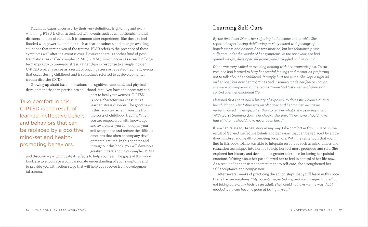 A mind-body workbook for healing and overcoming Complex PTSD Those affected by complex PTSD, or C-PTSD, commonly feel as though there is something fundamentally wrong with them―that somewhere inside there is a part of them that needs to be fixed. Facing one's PTSD is a brave, courageous act―and with the right guidance, recovery is possible. In The Complex PTSD Workbook, you'll learn all about C-PTSD and gain valuable insight into the types of symptoms associated with unresolved childhood trauma. Take healing into your own hands while applying strategies to help integrate positive beliefs and behaviors. Discover your path to recovery with: Find the tools you need to work through C-PTSD and regain emotional control with this mind-body workbook.