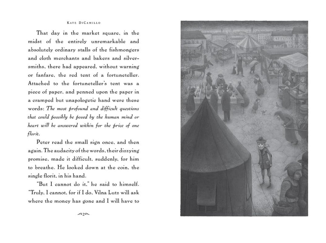 When a fortuneteller's tent appears in the market square of the city of Baltese, orphan Peter Augustus Duchene knows the questions that he needs to ask: Does his sister still live? And if so, how can he find her? The fortuneteller's mysterious answer (an elephant! An elephant will lead him there!) sets off a chain of events so remarkable, so impossible, that you will hardly dare to believe it’s true. With atmospheric illustrations by fine artist Yoko Tanaka, here is a dreamlike and captivating tale that could only be narrated by Newbery Medalist Kate DiCamillo. In this timeless fable, she evokes the largest of themes — hope and belonging, desire and compassion — with the lightness of a magician’s touch. With dreamlike illustrations and a cover by Yoko Tanaka.