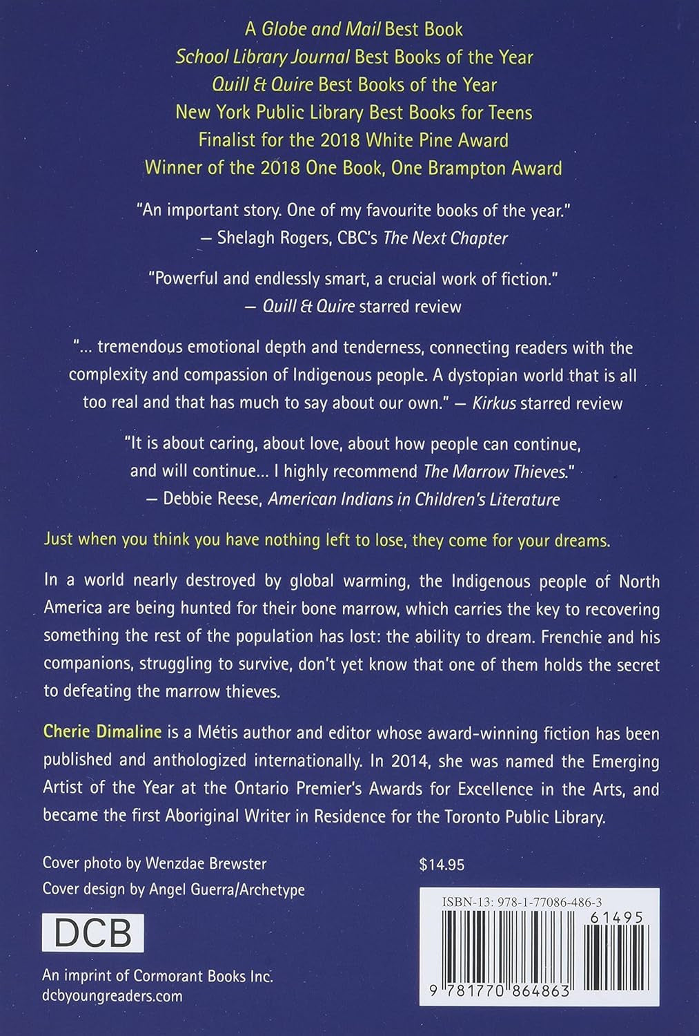Humanity has nearly destroyed its world through global warming, but now an even greater evil lurks. The Indigenous people of North America are being hunted and harvested for their bone marrow, which carries the key to recovering something the rest of the population has lost: the ability to dream. In this dark world, Frenchie and his companions struggle to survive as they make their way up north to the old lands. For now, survival means staying hidden - but what they don't know is that one of them holds the secret to defeating the marrow thieves.