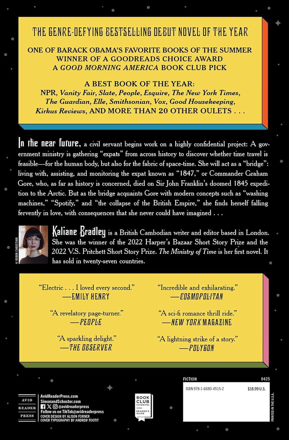A time travel romance, a spy thriller, a workplace comedy, and an ingenious exploration of the nature of power and the potential for love to change it all: Welcome to The Ministry of Time, the exhilarating debut novel by Kaliane Bradley.