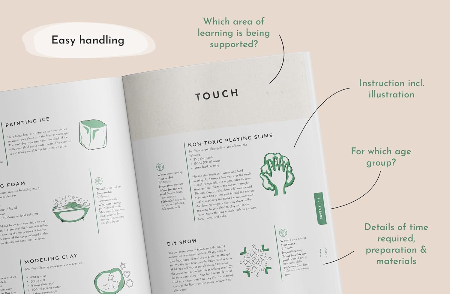 This book offers the solution: You can help your child learn coordination, build a large vocabulary, and develop tremendous confidence through selected Montessori activities. Your child will benefit from this for the rest of their life! As the phase between the ages of 0 and 3 is incredibly important, this book starts right at birth. This allows you to sustainably aid your child’s development with creative Montessori activities. Your child will learn autonomously and from their own experiences. That way, your child’s autonomy, and confidence will grow immensely. They will then benefit from this independent way of learning at school and later in the work environment. The activities are structured according to Montessori and designed in a modern way. They aim to support your child in exploring the world full of joy and in a playful fashion while being protected from over stimulation, stress, and pressure. This prevents severe mood swings or feeling overwhelmed in the long term. This book also includes frequently asked questions (FAQs) from other parents and an introductory theoretical part. As parents, you will learn how to best support your child on their journey. Click “Buy Now” in the top-right corner and support your child in playfully discovering the world and realizing its potential! Your child will thank you. Suitable for parents, parents-to-be, childminders, and nurseries.How to support your child's development with Montessori education towards independence and self-confidence through playing with 200 practical exercises at home!