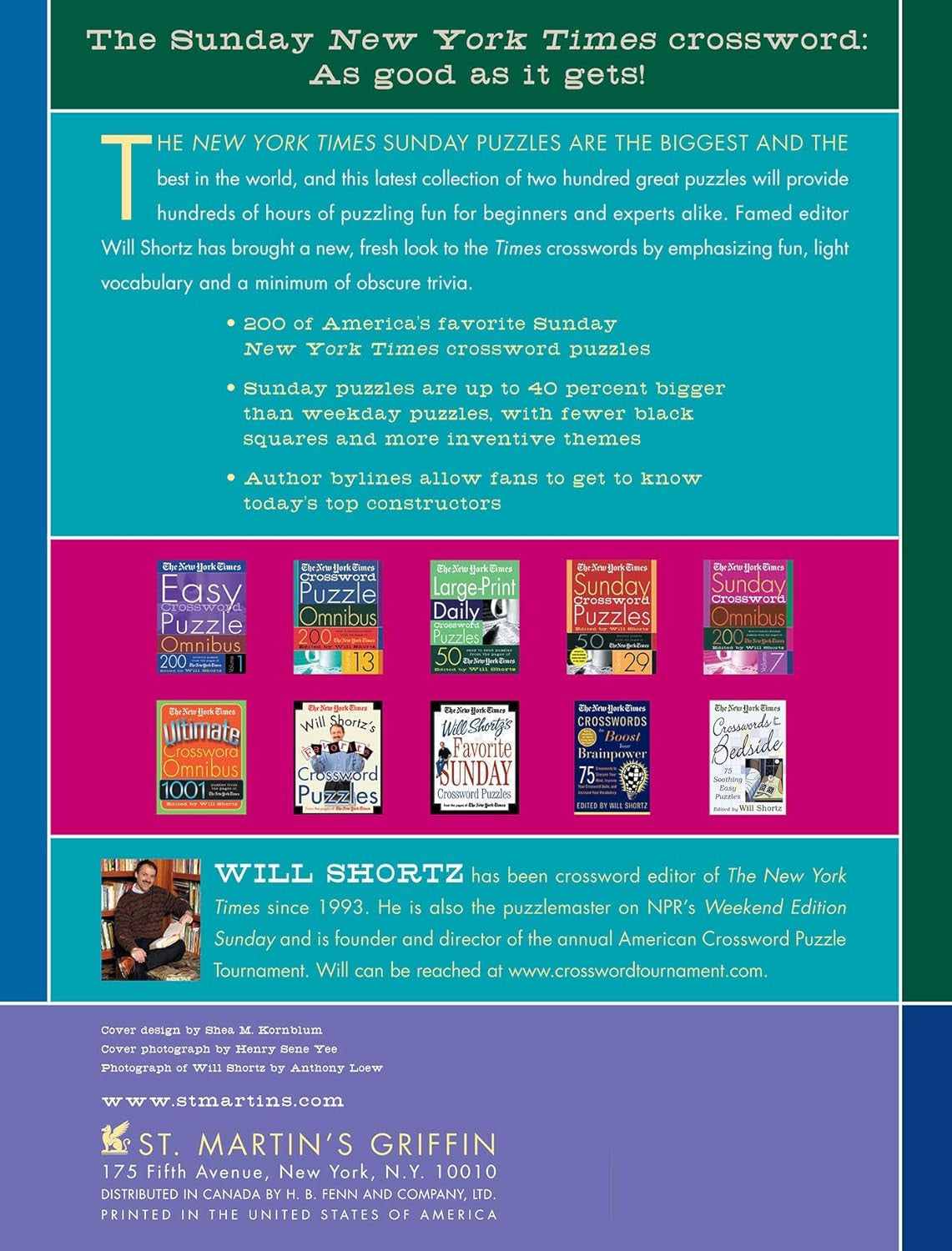 The New York Times Sunday puzzles are the biggest and the best in the world, and this latest collection of two hundred great puzzles will provide hundreds of hours of puzzling fun for beginners and experts alike. Famed editor Will Shortz has brought a new, fresh look to the Times crosswords by emphasizing fun, light vocabulary and a minimum of obscure trivia.