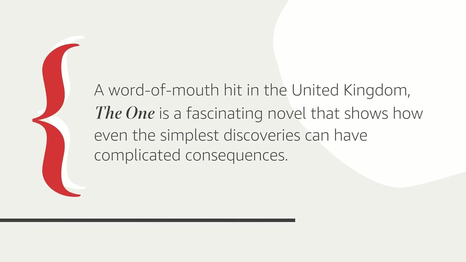 The nationally bestselling first book in the Dark Future series, The One is a fascinating novel that shows how even the simplest discoveries can have complicated consequences.