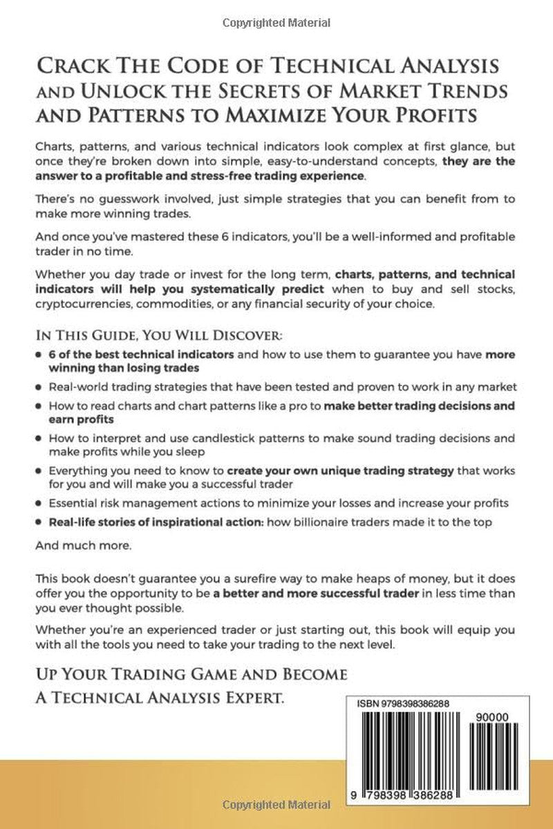Are you confused and overwhelmed by all the conflicting Do you feel that every trade you make depends a lot on Do you want a proven system of identifying market trends and predicting Then you’re in luck – it’s time to Even though charts, patterns, and various technical indicators look complex at These technical They’re much easier to understand than you can possibly imagine – And once you’ve mastered these 6 indicators, you’ll be a well-informed Whether you day trade or invest for the long term, In this guide, you will discover: And much more. Of course, not every trade you make will This book Whether you’re an experienced trader or just starting out, this book will equipCrack the code of technical analysis and unlock the secrets of market trends and patterns