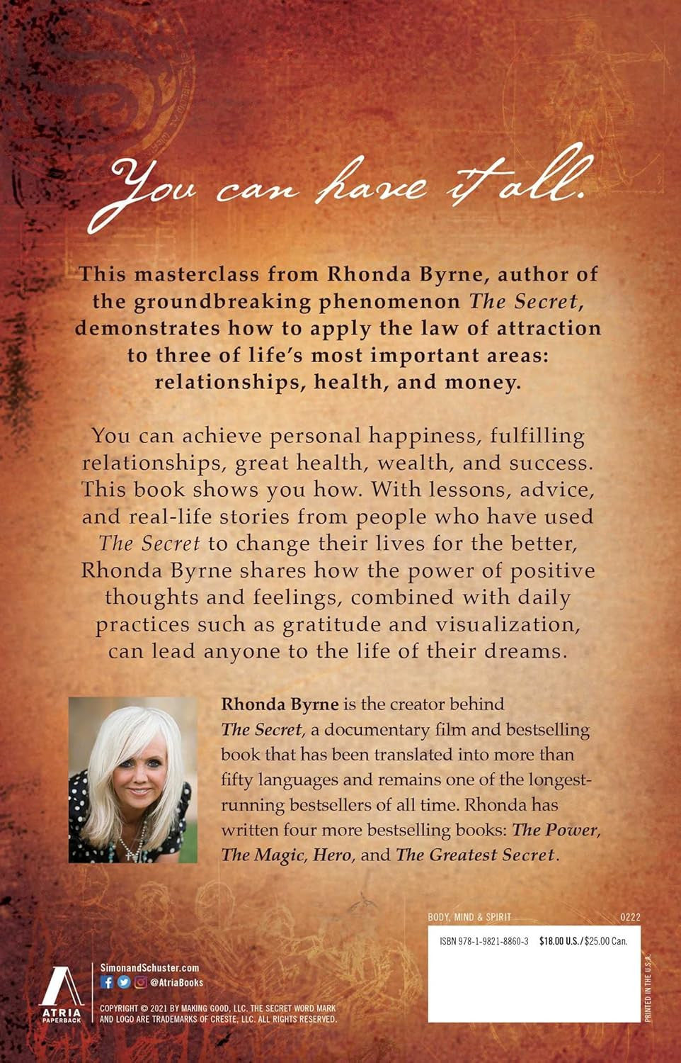 The second part offers in-depth lessons that will help you apply the law of attraction to your health and physical wellbeing, featuring inspiring anecdotes from those who have used The Secret to overcome health crises such as cancer, chronic pain, depression, and more.