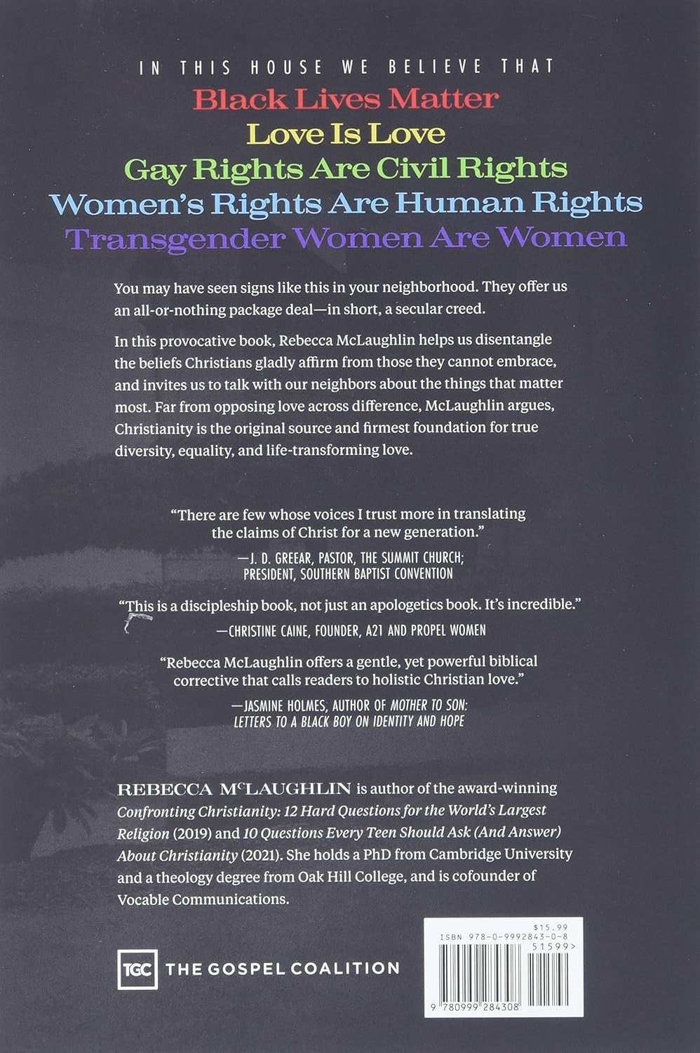 You may have seen signs with some of these messages in your neighborhood. They offer us an all-or-nothing package deal in short, a secular creed. In this provocative book, Rebecca McLaughlin helps us disentangle the beliefs Christians gladly affirm from those they cannot embrace, and invites us to talk with our neighbors about the things that matter most. Far from opposing love across difference, McLaughlin argues, Christianity is the original source and firmest foundation for true diversity, equality, and life-transforming love.