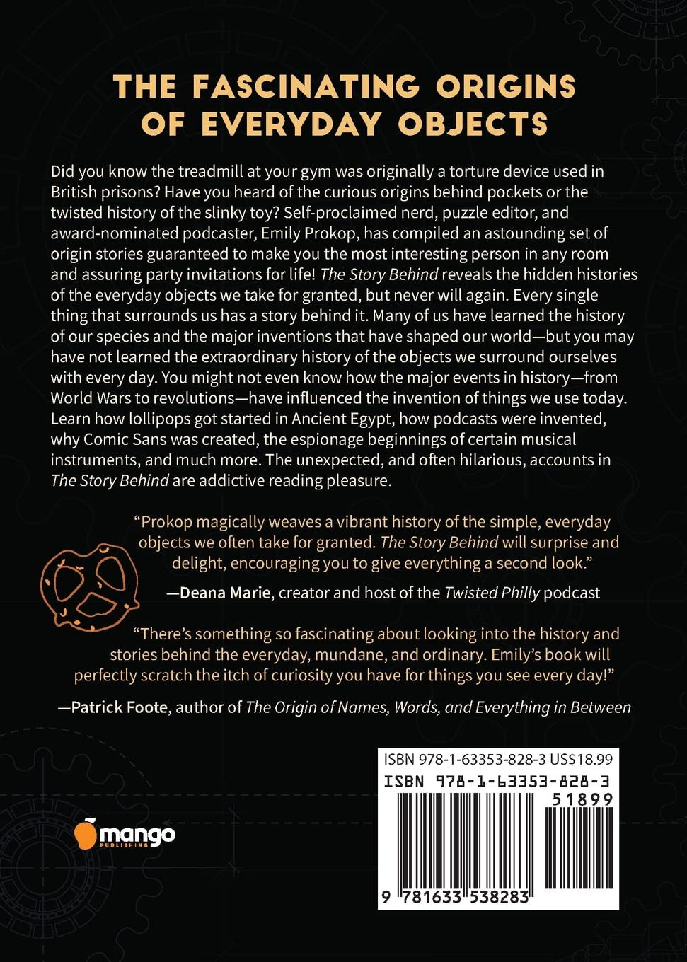 "Emily magically weaves a vibrant history of simple everyday objects we often take for granted. The Story Behind will surprise and delight..." ─Deana Marie, Creator & Host of the Twisted Philly podcast #1 Best Seller in Trivia & Fun Facts, Art History, Design History & Criticism, Reference, Decorative Arts & Design, and History of Technology Learn the fascinating history and trivia you never knew about things we use daily, from the host of The Story Behind podcast. Everyday objects and major events in history. Every single thing that surrounds us has a story behind it. Many of us learn the history of humans and the major inventions that shaped our world. But what you may not have learned is the history of objects we surround ourselves with every day. You might not even know how the major events in history (World Wars, ancient civilizations, revolutions, etc.) influenced the inventions of things we use today. The history and science behind the ordinary. From the creator of The Story Behind podcast comes one of the coolest coffee table books ever written. The Story Behind provides insight into everyday objects we don’t think much about as we use them. Topics covered in Emily’s podcast are examined in more detail along with new fascinating topics. Learn how lollipops got started in Ancient Egypt, how podcasts were invented, and why Comic Sans was created. Learn the torture device origins of certain exercise equipment and the espionage beginnings of certain musical instruments. Ordinary things from science to art, food to sports, customs to fashion, and more are explored. Inside: If you have enjoyed books such as Now I Know, What If?, Ever Wonder Why?, The Greatest Stories Never Told, or Atlas Obscura; you will be entertained by The Story Behind.Discover the Surprising History of Ordinary Things