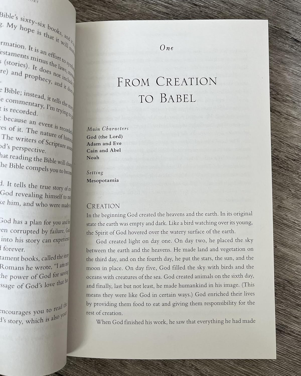The Bible tells a story. It's a beautiful account of God's love for people throughout history. The events of the Bible are exciting, tender, and at times awe-inspiring, but often the story can get lost among the laws, genealogies, poetry, and instructions.