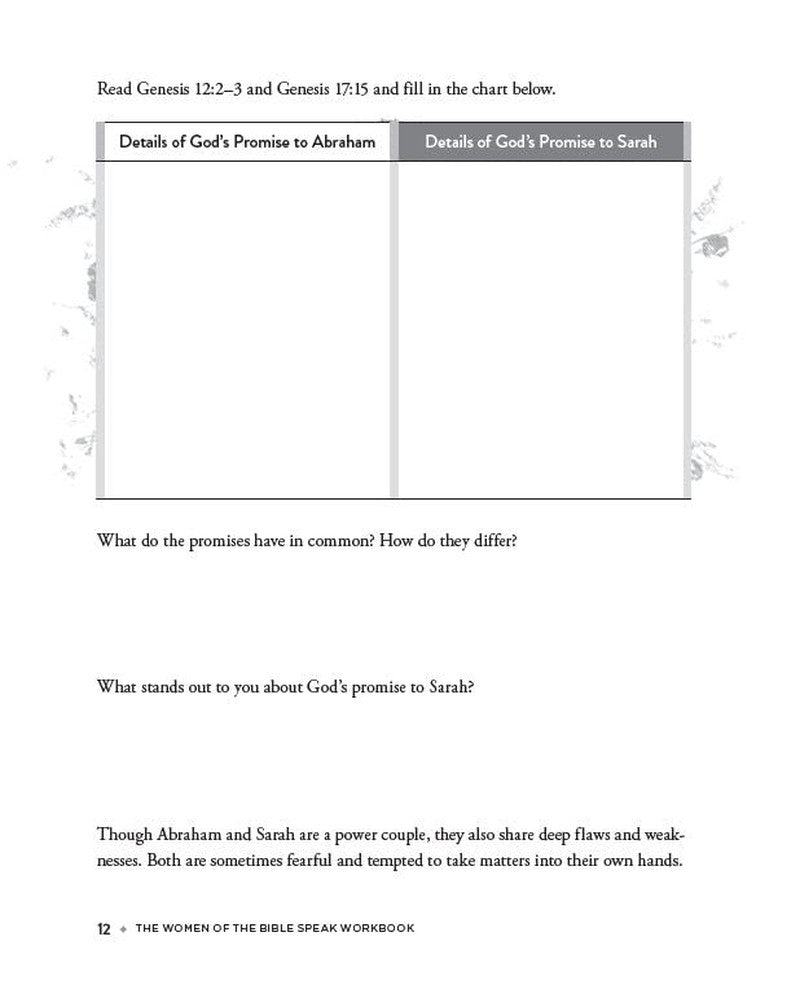 GOD CAN MEET YOUR NEEDS AS HE DID FOR WOMEN OF THE BIBLE Women are central to some of the most critical events, powerful encounters, and transformative moments in the Bible. They change the course of history. These extraordinary women rose above because God was their refuge, and now you can join them. Based on the #1 New York Times bestseller, The Women of the Bible Speak, this workbook connects the stories of old to each of our modern experiences. In these 16 lessons, you’ll be challenged to consider the parallels between each woman’s story and your own. You’ll reflect on how God worked in their lives and uncover how He’s working in yours, today. Each lesson in the workbook will take you through these exercises: BONUS SECTIONS: PAIRS where you’ll be asked to consider the women in pairs, finding the commonalities in their callings and challenges. Some of the women knew one another. Others were connected simply by a thread of common purpose, one that becomes clearer by studying the women side by side. Lessons include:
