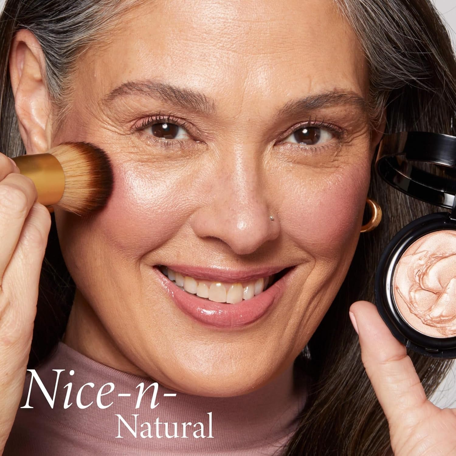 Is this a cream or a powder? It’s a balm! This product isn’t heavy or goopy like other cream blushes, you can think of it more like a moisturizing skin care. It’s a lightweight cream, with a tint of color, that sets to a beautiful finish. Can I use this with my Laura Geller baked foundations? Of course! This balm applies beautifully over all of our Baked Foundations without smudging, caking, or disturbing the product underneath. Want more intense color or glow? Try layering Baked Blush-n-Brighten or Baked Natural Glow Highlighter over it! Will this feel greasy or heavy on my skin? Nope, nobody likes heavy, greasy gunk on their face! This balm is specifically formulated to feel completely weightless and hydrating on skin. It’s a barely-there feel with a beautifully natural look. Is this product good for travel? Absolutely! The compact snaps tight, so it’s perfect for tossing in your handbag or travel kit on the go. Plus, since it’s so easy to apply with your fingertips for on the go, etc. This isn’t going to make me look like a clown, is it? Never. We talked to hundreds of women over 40 about the look they love. This product is our answer to your asks for a product that was weightless, hydrating, and promoted a simple “no makeup-makeup” look.