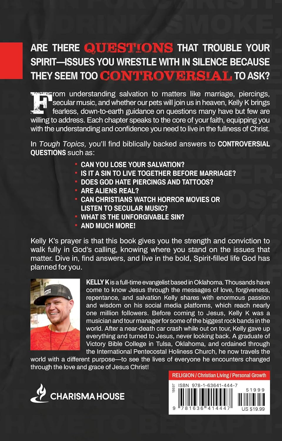 Countless people are worried, angry, fearful, and just plain confused when it comes to some of the more perplexing issues that life poses and the Bible provokes. Tough Topics provides solid and scriptural answers to 25 such questions. Kelly K. seeks to tackle frustration by looking deeply, not superficially, at what Scripture says, deriving clear and persuasive explanations for these thought-provoking matters.
