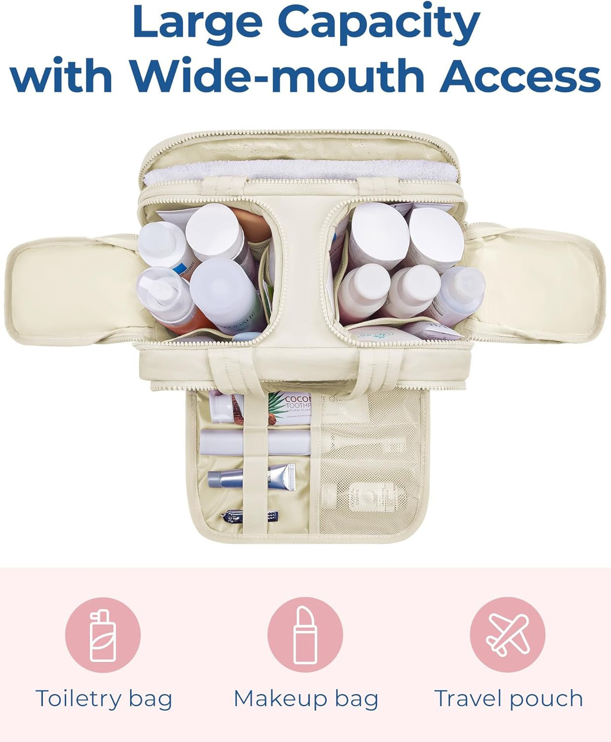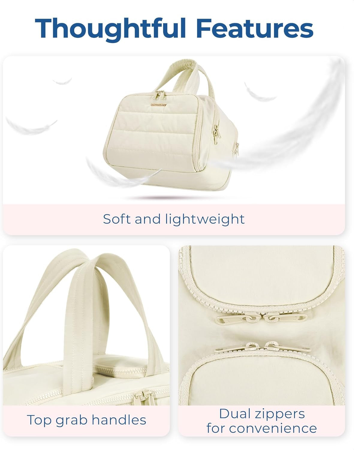 Travel Toiletry Bag, Lightweight Large Wide-Open Travel Bag for Women, Puffy Cosmetic Makeup Bag Organizer with Handle for Accessories,Essentials, Toiletries, Beige