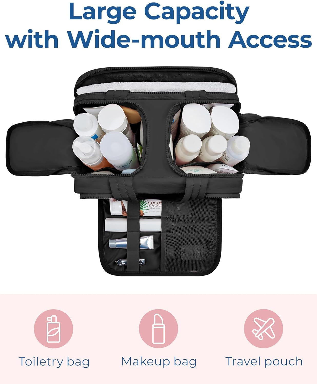 Travel Toiletry Bag, Lightweight Large Wide-Open Travel Bag for Women, Puffy Cosmetic Makeup Bag Organizer with Handle for Accessories,Essentials, Toiletries, Black