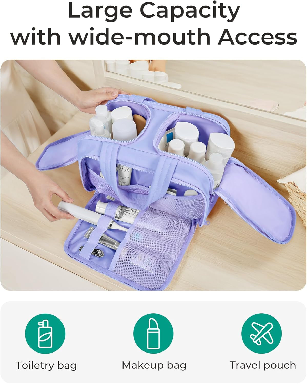 Travel Toiletry Bag, Lightweight Large Wide-Open Travel Bag for Women, Puffy Cosmetic Makeup Bag Organizer with Handle for Accessories,Essentials, Toiletries, Purple
