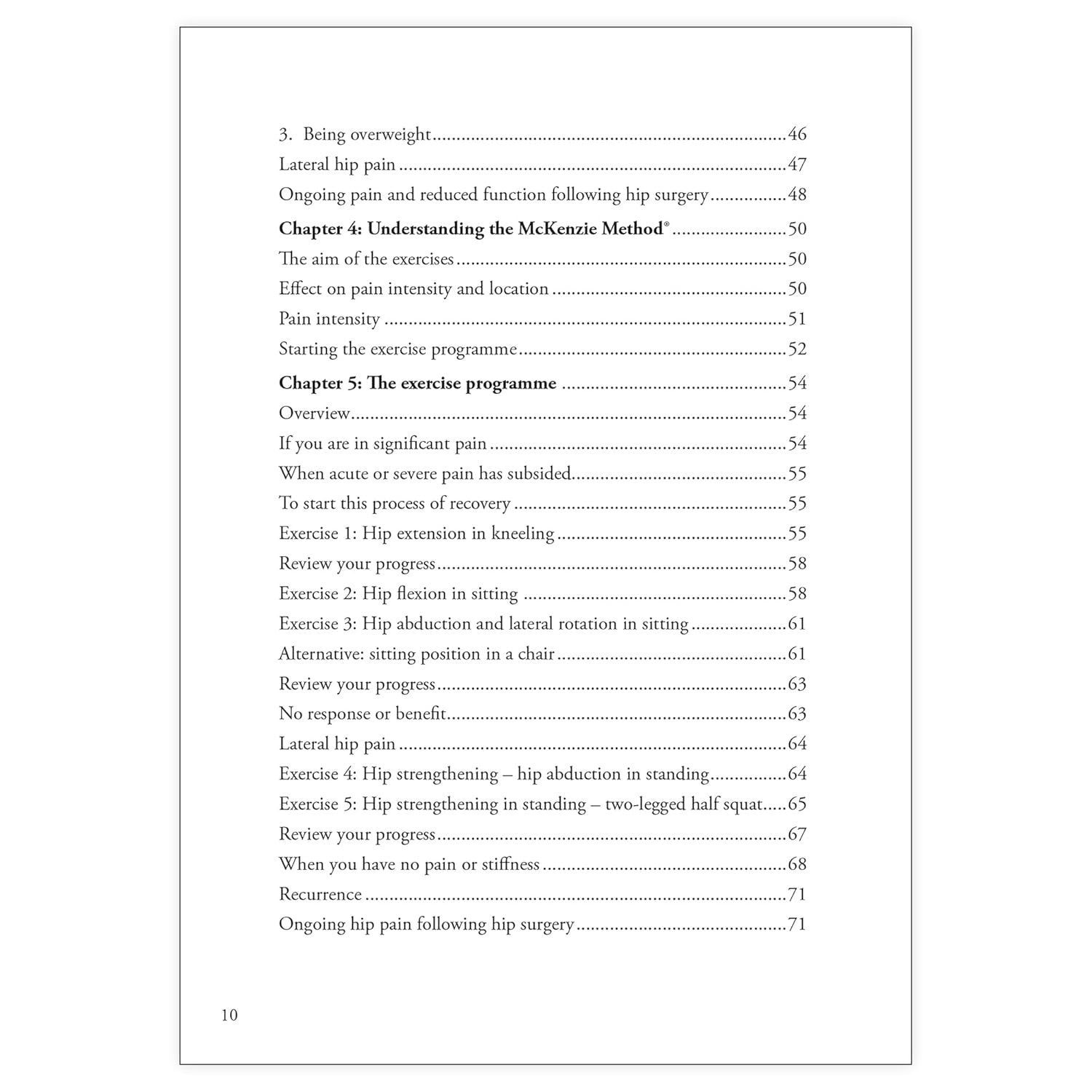 From the Worldwide Best-Selling Treat Your Own Series, this Book offers Education and Self-Treatment Techniques to Help You Get Better and Stay Better Hip pain affects our ability to perform daily tasks like putting on socks or shoes, and our ability to move naturally—to get up from sitting and get in and out of the car. Going up and down stairs becomes difficult; and some people develop a limp, which causes pain in other areas as the body tries to compensate. This type of pain is often diagnosed by health professionals as hip arthritis, or ‘osteoarthritis’. Common treatments including medications, injections, surgery, acupuncture, or electrical modalities such as ultrasound, TENS and interferential therapy may provide short-term benefits, but the pain often reappears. If you are one of the millions of people struggling with hip pain, you are seeking more than temporary hip pain relief. This book provides education, a systematic exercise sequence, and recommendations for lifestyle habits that can help you abolish pain and, where appropriate, regain full mobility and strength in the hip or as much movement as possible under the given circumstances. Written by physiotherapist Robin McKenzie, Treat Your Own Hip provides a rational explanation for the causes of hip pain. You’ll gain an understanding of how the hip works and what causes hip pain. You’ll then be introduced to the McKenzie Method®, which is a series of progressive exercises that you can do to self-treat pain and help prevent recurrence. This exercise program includes details on when to perform exercises, how to determine if you’re ready to move on to the next exercise, how to perform the exercises correctly, what to do when the pain has subsided, and how to prevent recurrence of pain. You’ll also receive information about lifestyle habits for optimal hip care. In Treat Your Own Hip you’ll learn: This patient handbook provides an easy-to-follow self-treatment plan to quickly and effectively diagnose, alleviate, treat and manage debilitating hip and related pains, even for the long-term sufferer. Written by Robin McKenzie, CNZM, OBE, FCSP (Hon), FNZSP (Hon), Dip MDT, Dip MT; with Grant Watson, NZSP, ADP (OMT), Dip MT, Dip MDT; and Robert Lindsay, NZSP, ADP (OMT), Dip MT. Illustrated. Softcover; 88 pages.