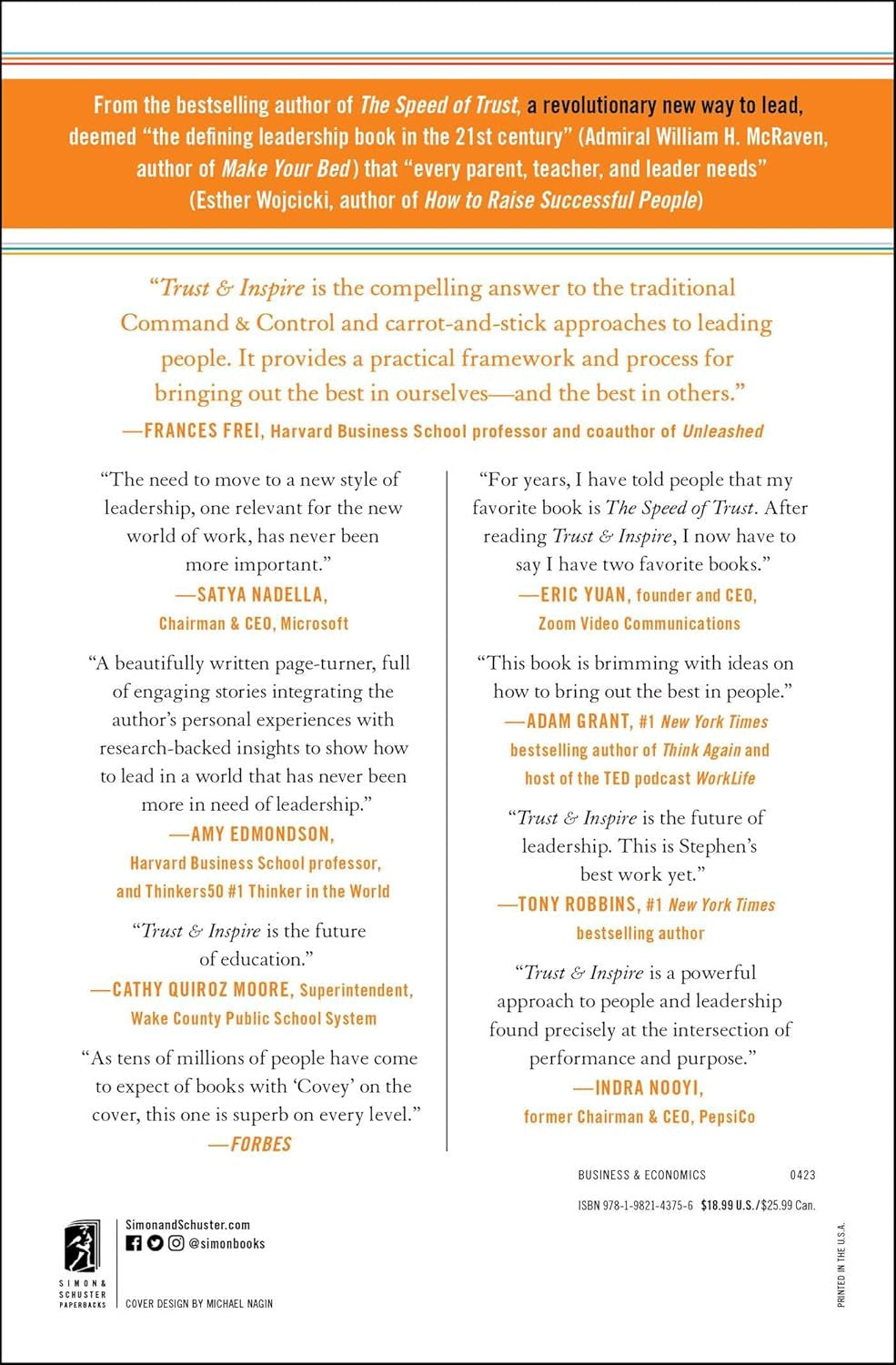Stephen M.R. Covey has made it his life’s work to understand trust in leadership and organizations. In his newest and most transformative book, Trust and Inspire, he offers a simple yet bold solution: to shift from this “command and control” model to a leadership style of “trust and inspire.” People don’t want to be managed; they want to be led. Trust and Inspire is a new way of leading that starts with the belief that people are creative, collaborative, and full of potential. People with this kind of leader are inspired to become the best version of themselves and to produce their best work. In this “beautifully written page-turner” (Amy Edmondson, Harvard Business School professor), Covey offers the solution to the future of work: where a dispersed workforce will be the norm, necessitating trust and collaboration across time zones, cultures, personalities, generations, and technology.