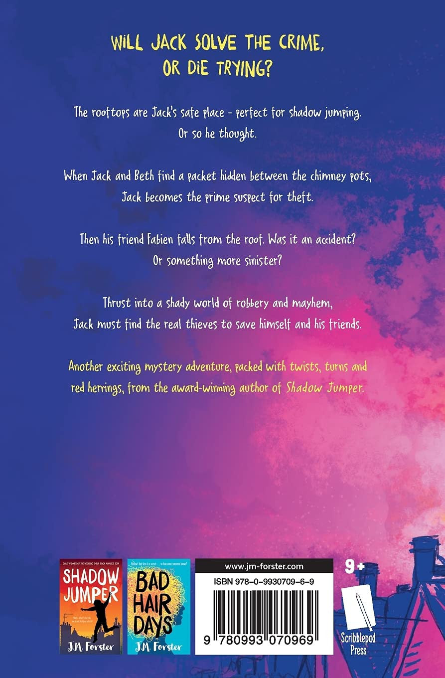 The rooftops are Jack's safe place - perfect for shadow jumping. Or so he thought. When Jack and Beth find a packet hidden between the chimney pots, Jack becomes the prime suspect for theft. Then his friend Fabien falls from the roof. Was it an accident? Or something more sinister? Thrust into a shady world of robbery and mayhem, Jack must find the real thieves to save himself and his friends.