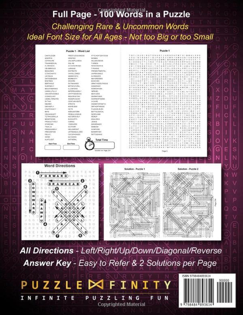 Super Challenging Word Search Puzzles This book is specially designed for extreme puzzle lovers with a rich word set of 10,000 uncommon & rare words. Each puzzle comprises 100 words carefully structured in every direction to make the puzzles more exciting & challenging. This is a Must-have puzzle book if you are a word search lover and the best gift for any word searcher for the ultimate brain challenge with words. Order Today!