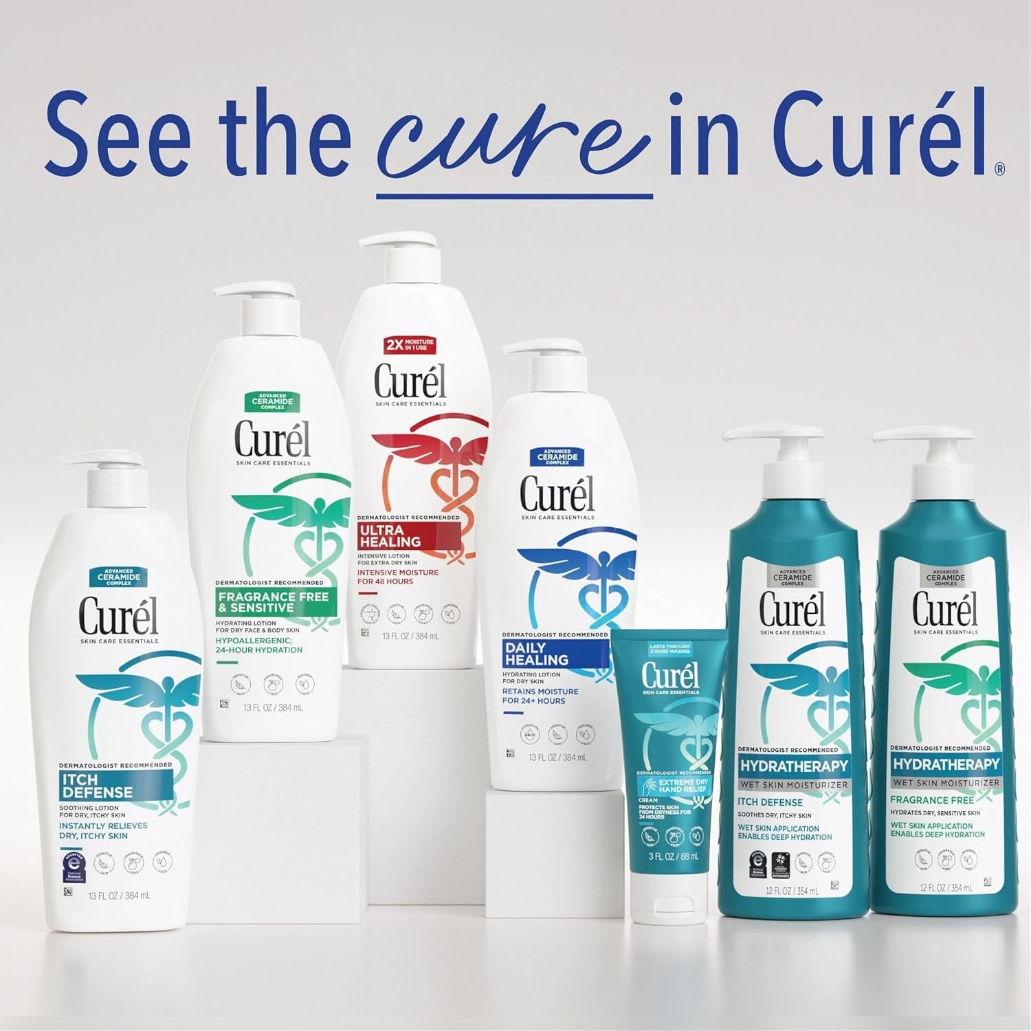 Searching for a hand and body moisturizer that is both gentle and effective for extra dry skin? From Curel Skincare, meet the Dermatologist Recommended Curel Ultra Healing Intensive Lotion For Extra-Dry, Tight Skin. Ideal for dry or severely dry skin, this intensive formula provides instant relief and helps protect skin from dryness for over 24 hours. Curel Ultra Healing Lotion, with Advanced Ceramide Complex, works at the source of dryness to help repair the skin’s moisture barrier and prevent the symptoms of dry skin from returning. Curel Ultra Healing lotion is dermatologist tested and leaves skin moisturized and healthy-looking. This non-greasy lotion is easily absorbed into dry skin and moisturizes 1.95 times better than the leading therapeutic moisturizer. Also, the fact that this lotion is Fragrance Free is ideal for anyone who wants a unisex hand and body lotion for dry hands or a men moisturizer. Because the formula is unisex and not just a body lotion for women, it is also a lotion for men –– really, it’s an everyone lotion. The formula is Cruelty Free, Paraben Free, Dye Free, Phthalate Free, Non-comedogenic and Vegan Friendly. This skin hydrating lotion is suitable for dry, sensitive skin and contains naturally hydrating agents to help even the extra dry, tight skin feel soft, supple and restored. Curel Ultra Healing Intensive Lotion For Extra-Dry, Tight Skin is great for all over body use.