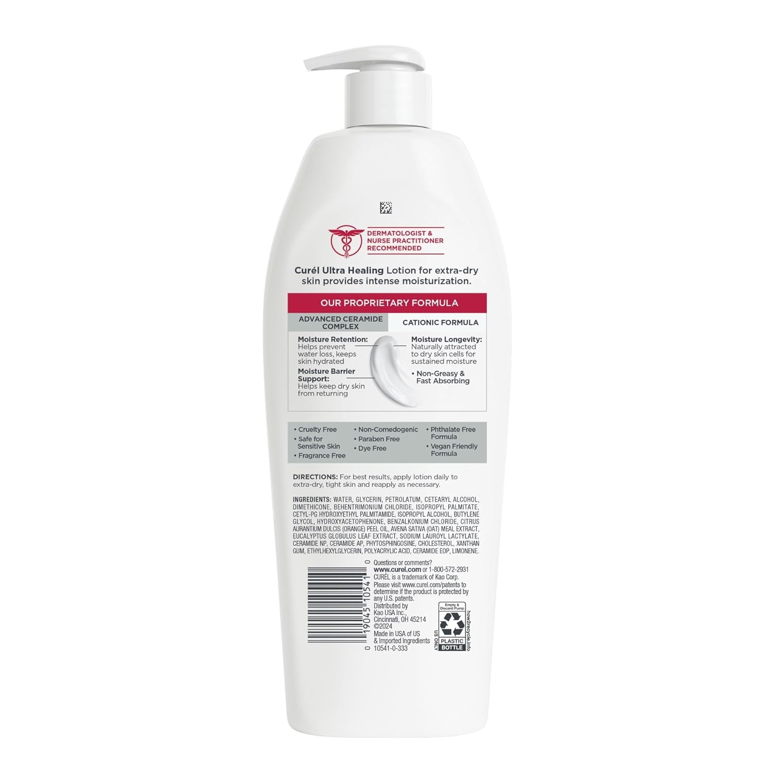 Searching for a hand and body moisturizer that is both gentle and effective for extra dry skin? From Curel Skincare, meet the Dermatologist Recommended Curel Ultra Healing Intensive Lotion For Extra-Dry, Tight Skin. Ideal for dry or severely dry skin, this intensive formula provides instant relief and helps protect skin from dryness for over 24 hours. Curel Ultra Healing Lotion, with Advanced Ceramide Complex, works at the source of dryness to help repair the skin’s moisture barrier and prevent the symptoms of dry skin from returning. Curel Ultra Healing lotion is dermatologist tested and leaves skin moisturized and healthy-looking. This non-greasy lotion is easily absorbed into dry skin and moisturizes 1.95 times better than the leading therapeutic moisturizer. Also, the fact that this lotion is Fragrance Free is ideal for anyone who wants a unisex hand and body lotion for dry hands or a men moisturizer. Because the formula is unisex and not just a body lotion for women, it is also a lotion for men –– really, it’s an everyone lotion. The formula is Cruelty Free, Paraben Free, Dye Free, Phthalate Free, Non-comedogenic and Vegan Friendly. This skin hydrating lotion is suitable for dry, sensitive skin and contains naturally hydrating agents to help even the extra dry, tight skin feel soft, supple and restored. Curel Ultra Healing Intensive Lotion For Extra-Dry, Tight Skin is great for all over body use.